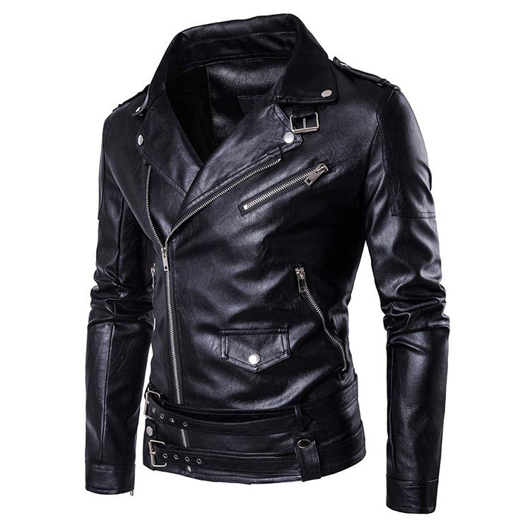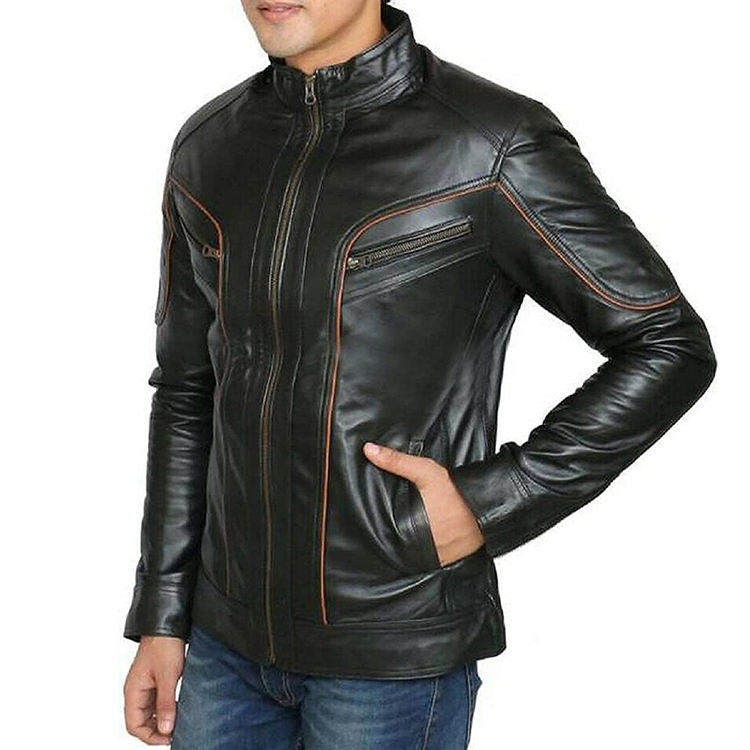 Personalized Popular Vintage Slim Men's Leather Jackets Custom Made Winter Fashion with Front Crystal Logo Wholesale Price