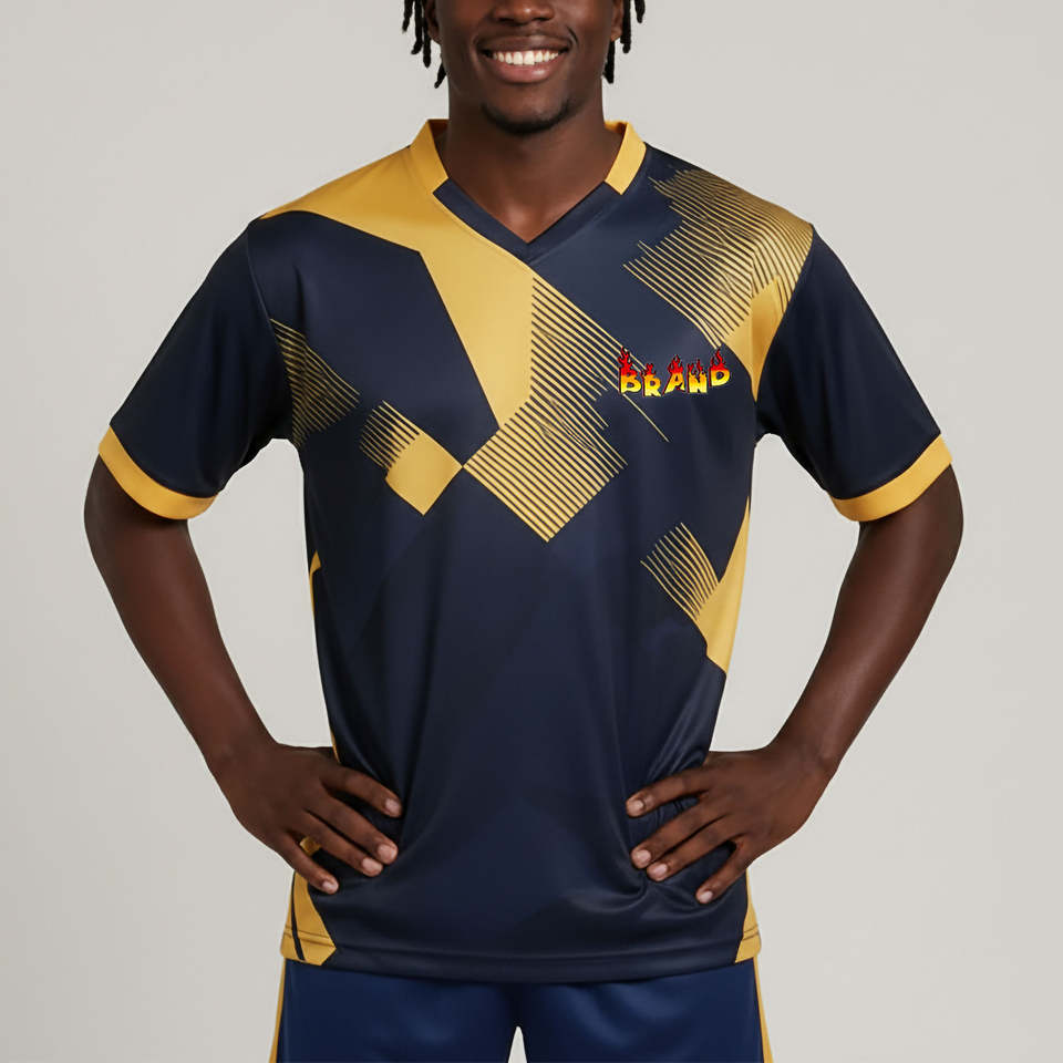 ชุดเสื้อฟุตบอลของผู้ชายชุดเสื้อกีฬาแขนสั้นระบายอากาศได้ดีดีไซน์แบบพรีเมียมตามสั่ง