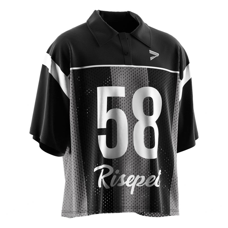 เสื้อฟุตบอลอเมริกันสไตล์เรโทรแบบสั่งทำพิเศษ คอปกโปโล ทรงหลวม ผลิตจากผ้าตาข่ายระบายความชื้นและผ้าถักเนื้อเงา