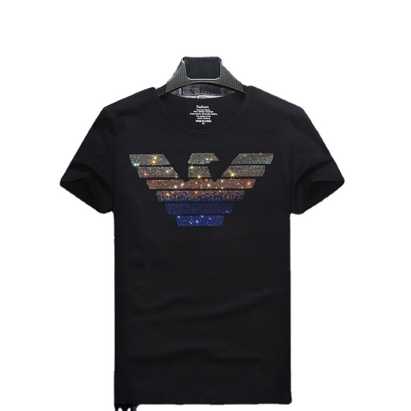 เสื้อยืดประดับเพชรแบบกำหนดเอง เสื้อยืดผ้าฝ้ายปักมุกแบบรีดร้อน เสื้อยืดประดับเพชรพร้อมโลโก้ของคุณเองสำหรับผู้ชาย