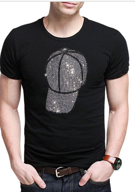 เสื้อยืดผู้ชายประดับพลอยเทียม