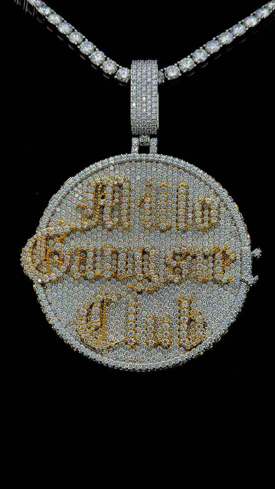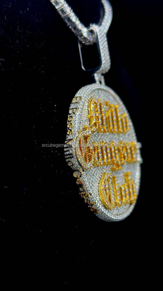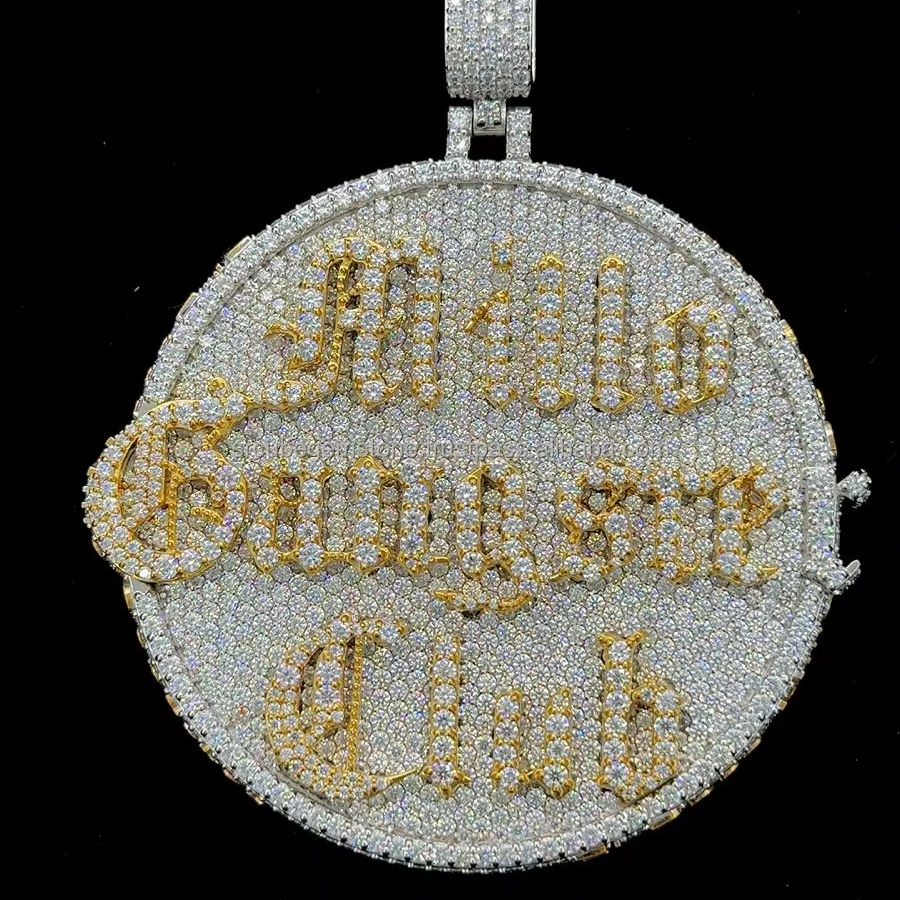 จี้เพชรทรงกลมแบบส่วนตัว สไตล์ฮิปฮอป ชุบทอง สองชั้น พร้อมโลโก้และชื่อ สำหรับงานปาร์ตี้