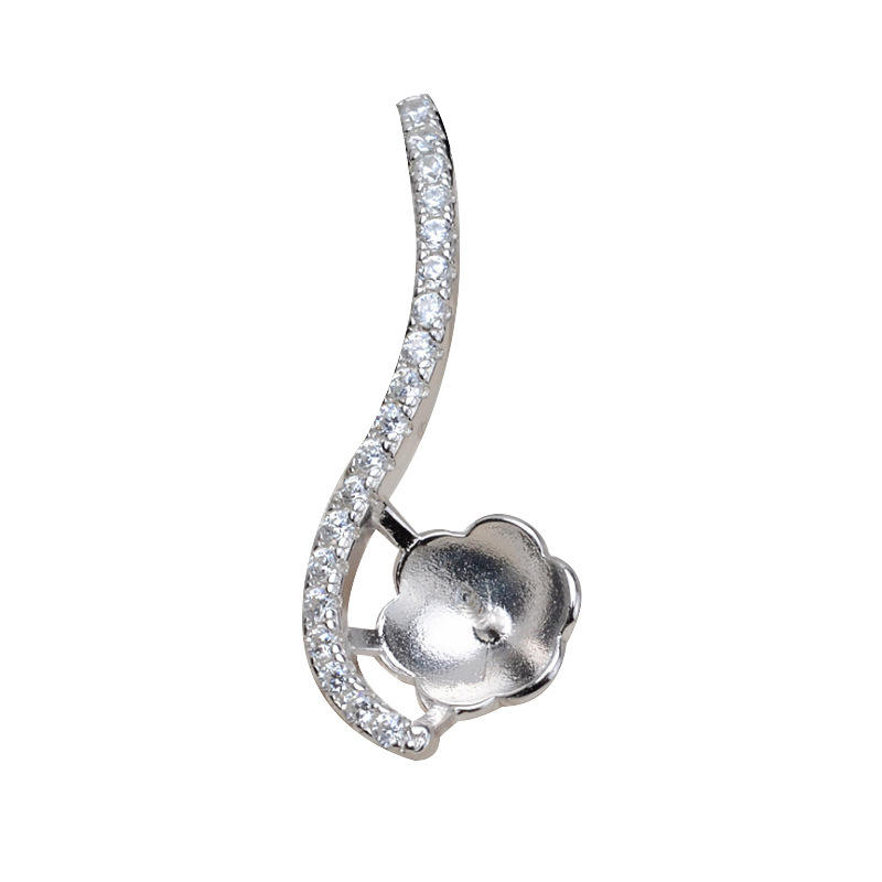 จี้เงินแท้ S925 สไตล์เกาหลี รุ่น S พร้อมไข่มุก DIY ขนาด 9-10 มม. อุปกรณ์เสริมสำหรับทำเครื่องประดับผม พร้อมฐานรอง