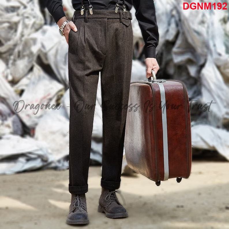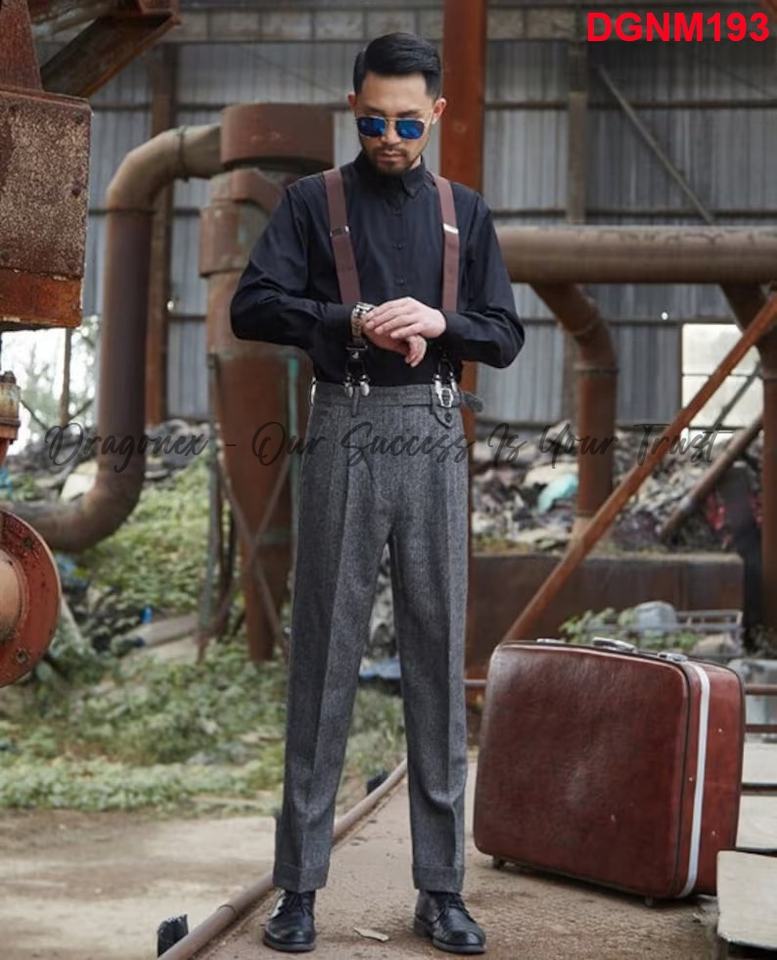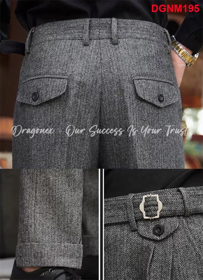 กางเกงขายาวผู้ชายทรงตรงผ้าแคนวาสสีเทามอสและพริกไทยเกลือแบบมีกระดุมสำหรับฤดูร้อน