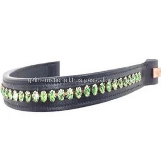 กำไลหนังรูปม้าทรงกลมขนาดใหญ่ประดับด้วยเม็ดสีประกายระยิบระยับช่องเดี่ยวมีช่องใส่คิ้ว
