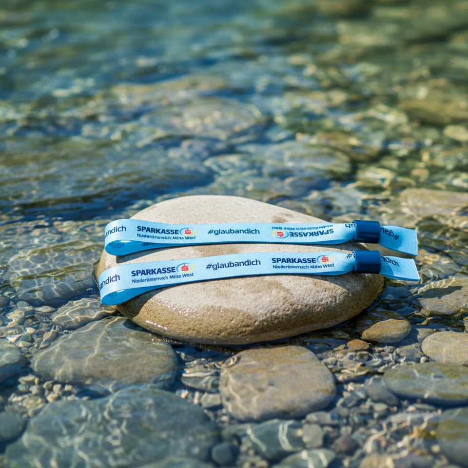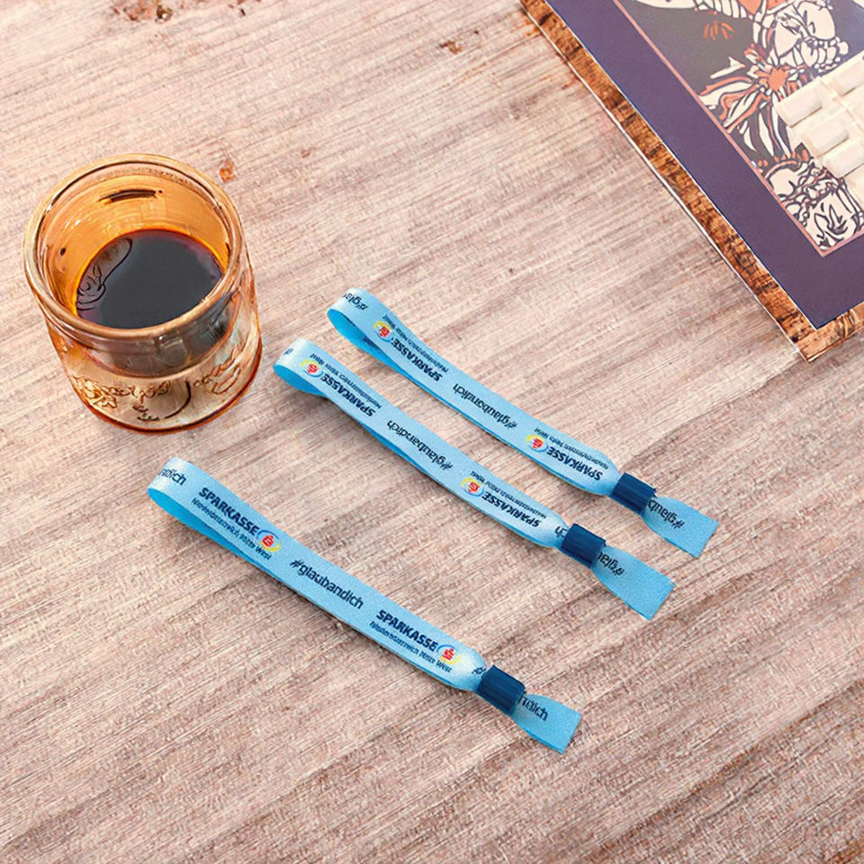 สายรัดข้อมือโพลีเอสเตอร์แบบใช้แล้วทิ้ง พิมพ์ลายแบบซับลิเมชั่นตามสั่ง เป็นมิตรกับสิ่งแวดล้อม สำหรับงานโปรโมชั่น