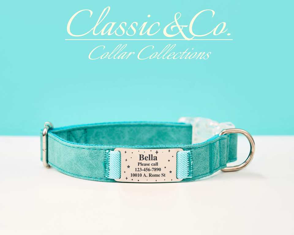 ชุดสายจูงสัตว์เลี้ยงหนังนิ่มส่วนบุคคลปลอกคอแมวน้ำแบบกำหนดเองป้ายชื่อโลหะสลักชื่อพร้อมกระดิ่งฟรีสุนัขที่ไม่เหมือนใคร