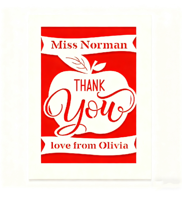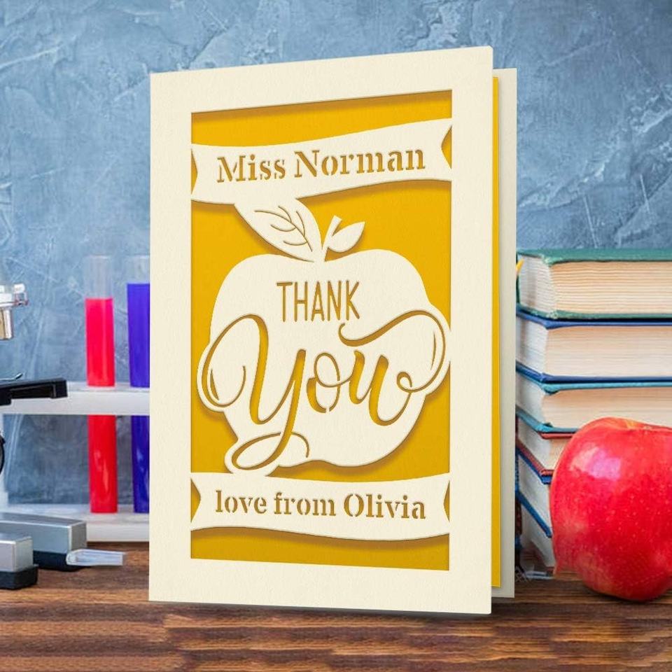 Personalized Thank You Card Laser Paper Cut Thank You Teacher Card with Envelopes Custom Gift for Teacher Teaching Assistant