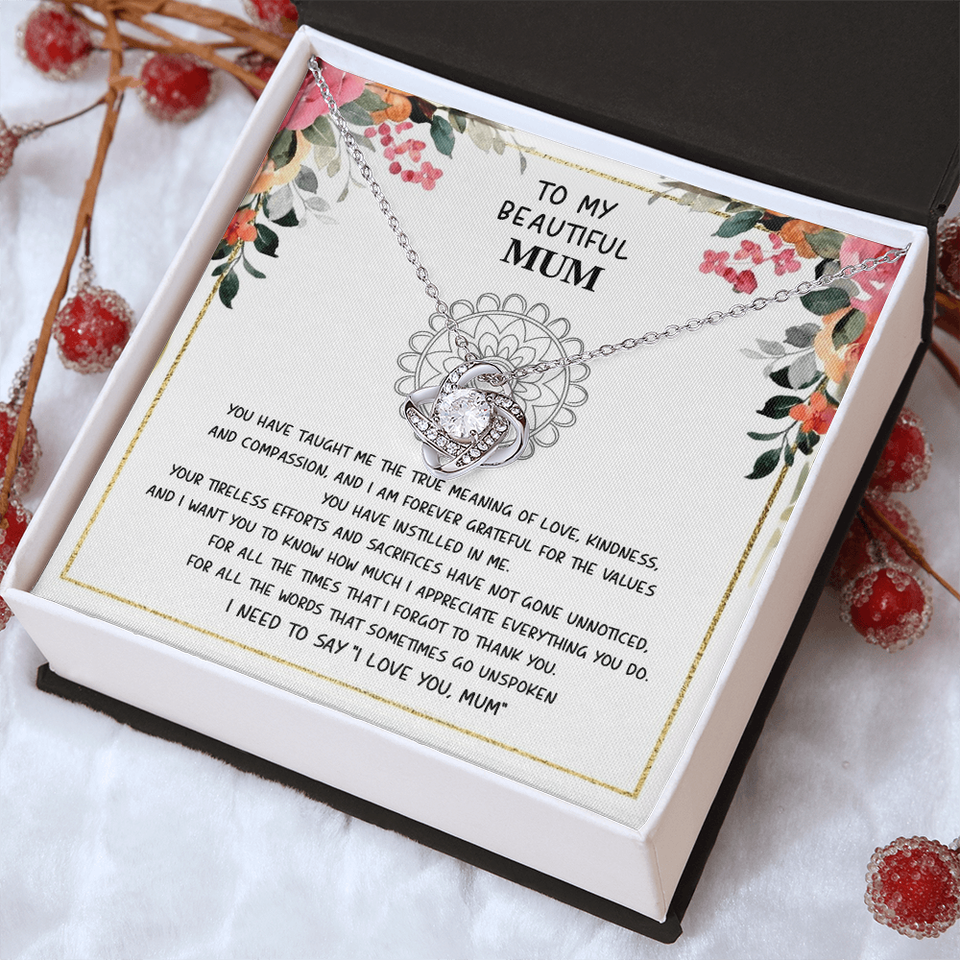 สร้อยคอทองแดงสลักข้อความส่วนตัวสำหรับคุณแม่ที่รัก พร้อมการ์ดข้อความแบบกำหนดเอง-จี้ลายแมนดาลา กล่องของขวัญไม้ สำหรับวันแม่