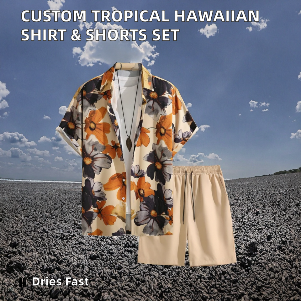 ชุดเสื้อและกางเกงขาสั้นถักลายฮาวายแบบสั่งทำพิเศษ ระบายอากาศได้ดี แห้งเร็ว ลายปัก พิมพ์ลาย ไซส์ใหญ่ สำหรับฤดูใบไม้ผลิและฤดูร้อน