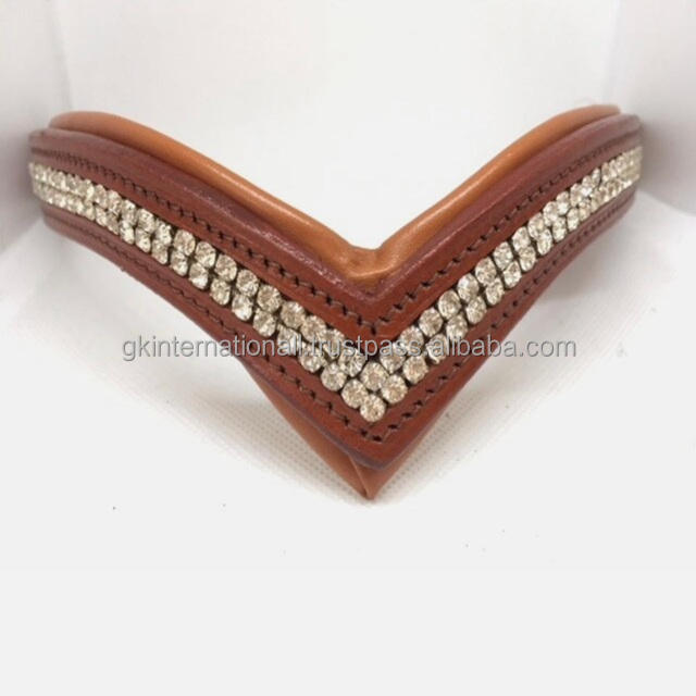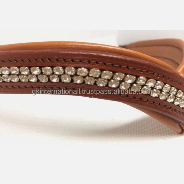 สายคาดผมประดับคริสตัลประกายระยิบระยับแบบมีสองแถวประดับด้วยหนังม้าเกรดพรีเมี่ยมสำหรับบังเหียน