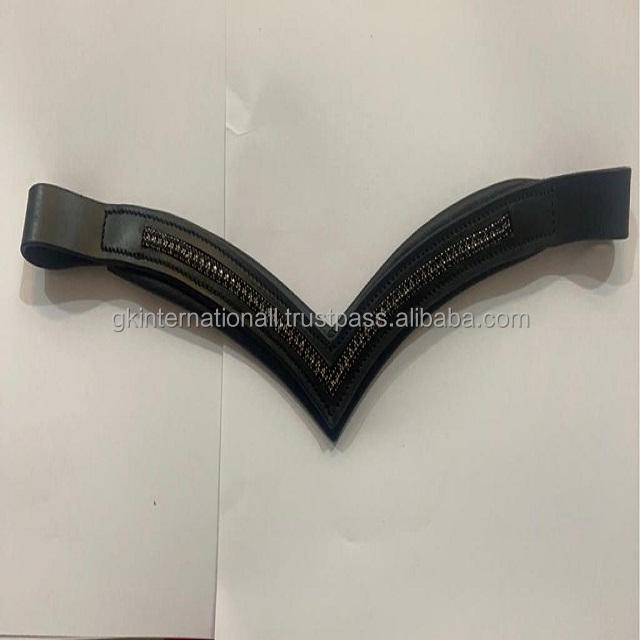 สายหนังแท้สีดำรูปตัว V,สายรัดคิ้วม้าคริสตัลสีม่วง2แถวเย็บคิ้วเต็มแผ่น