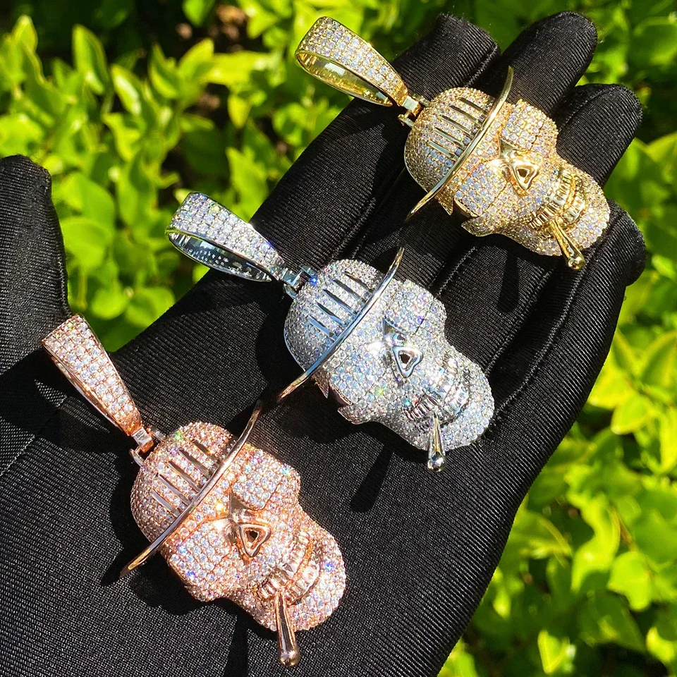จี้เพชรโมอิสซาไนต์ VVS แบบสั่งทำพิเศษ สไตล์ฮิปฮอป ประดับเพชรเต็มตัว พร้อมสร้อยคอเงินแท้ 925 ชุบทอง ดีไซน์หน้ากะโหลก สำหรับแร็ปเปอร์