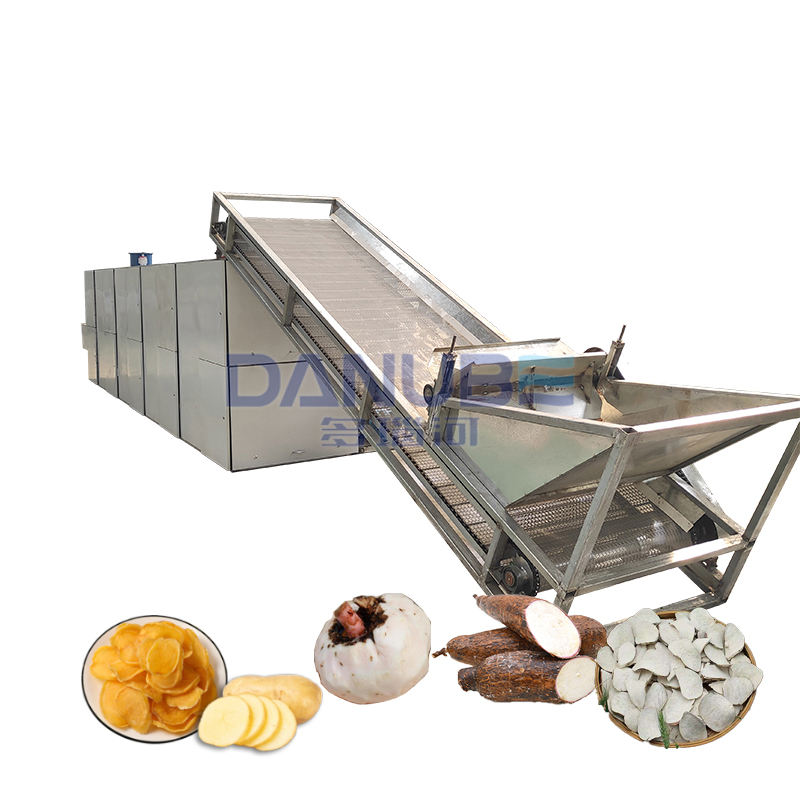 เครื่องอบผักแบบสายพานตาข่ายอัตโนมัติ เครื่องอบมัลเบอร์รี่ เครื่องทำความสะอาดและหั่นผักเป็นแผ่น