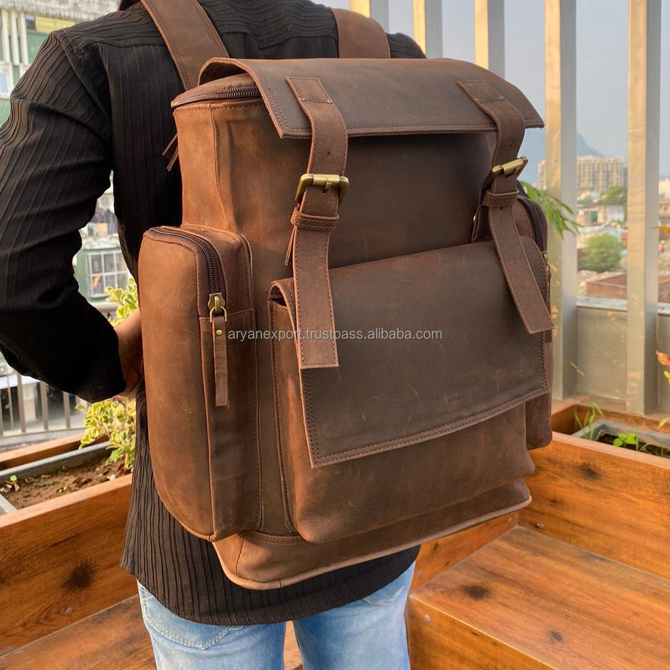 กระเป๋าเป้สะพายหลังใส่แล็ปท็อปของผู้ชายหนังลายวินเทจแบบเต็มตัวกระเป๋าไปโรงเรียนกระเป๋าเป้สะพายหลังสำหรับเดินทางไปตั้งแคมป์เป้สะพายหลังทำจากหนังสำหรับผู้ชาย
