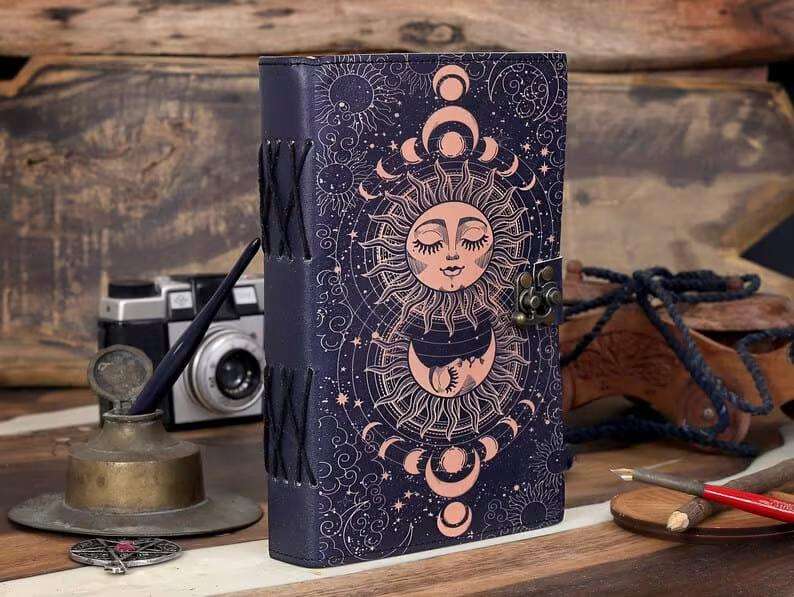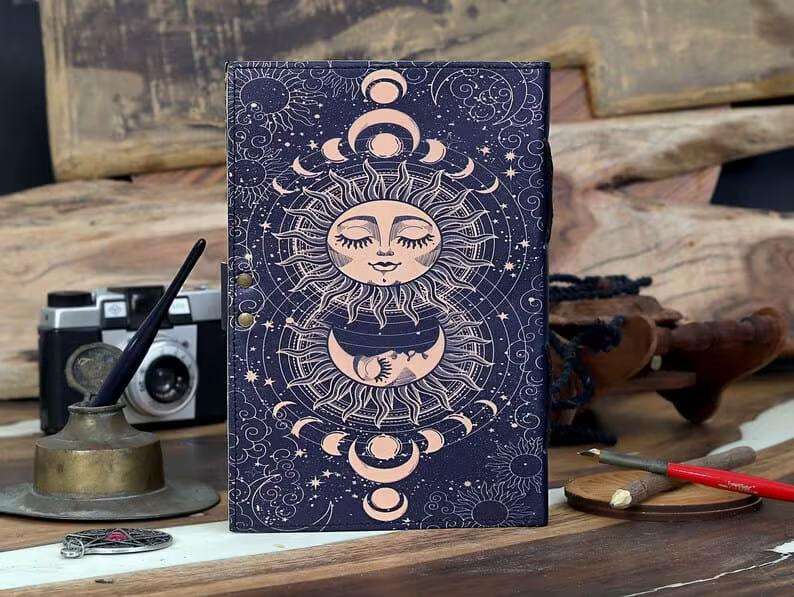 สมุดบันทึกหนังวินเทจสำหรับผู้ชายและผู้หญิงสมุดสเก็ตช์ภาพดวงจันทร์พร้อมกระดาษสีน้ำสมุดสไตล์มินิ