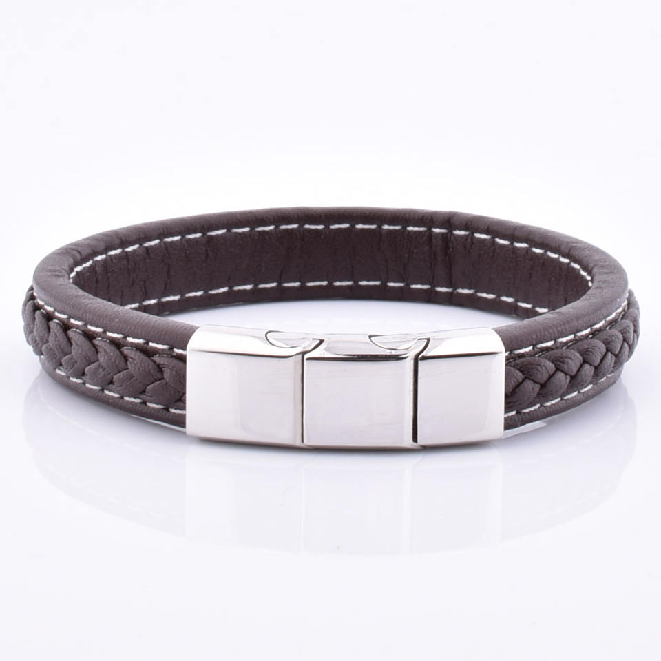 กำไลข้อมือหนังวินเทจทำจากสแตนเลสปรับขนาดได้