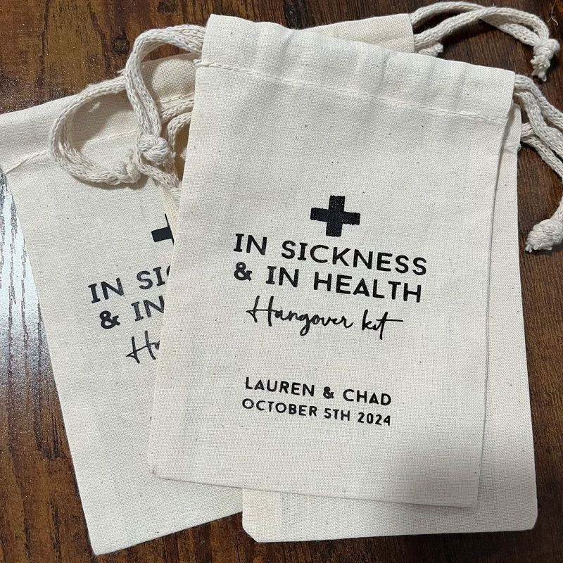 ถุงของชำร่วยงานแต่งงานแบบเป็นมิตรกับสิ่งแวดล้อม ดีไซน์ต้อนรับส่วนตัว พร้อมชื่อและวันที่ที่กำหนดเอง ทำจากผ้าแคนวาส ปิดแบบเชือกผูก สไตล์โรแมนติก