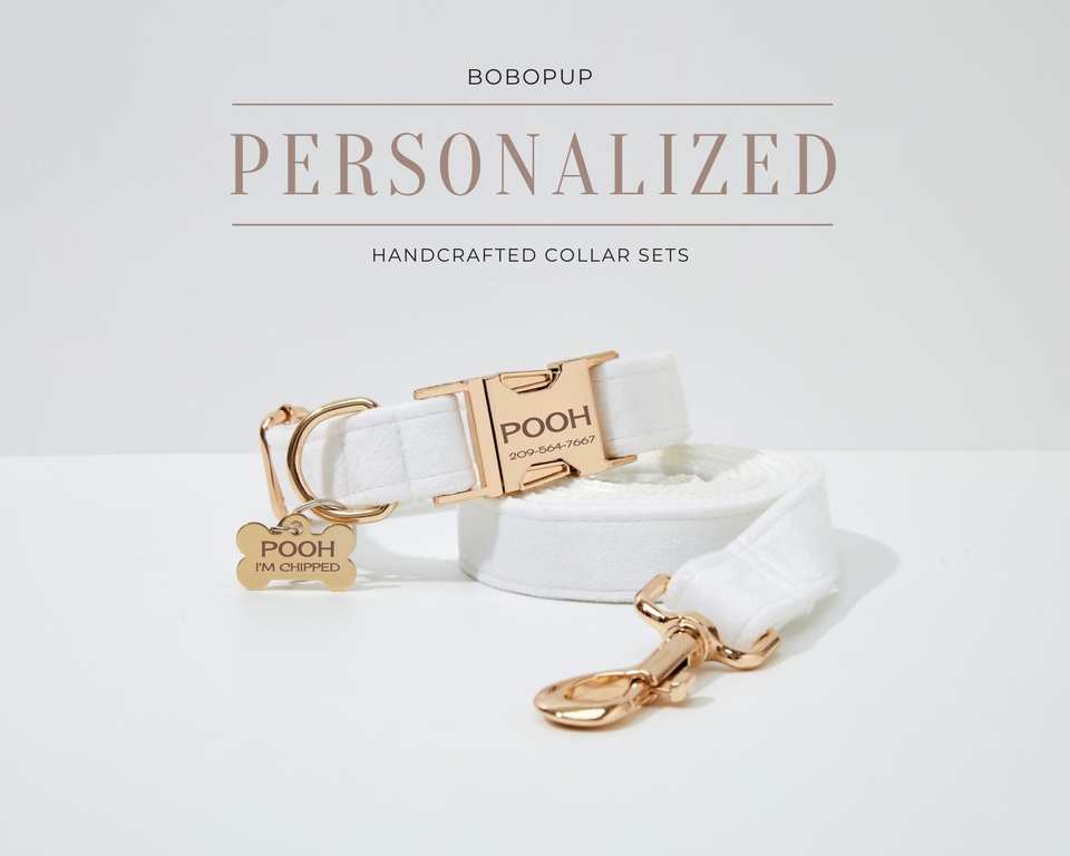 Personalized White No Pull Set, Handmade Puppy For Cat, Luxurious Veet Dog Harness Flower Collar Leash