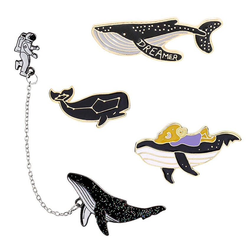เข็มกลัดปลาวาฬเคลือบโลหะแบบนิ่มลายปลาวาฬของที่ระลึกธีมทะเลสั่งทำ