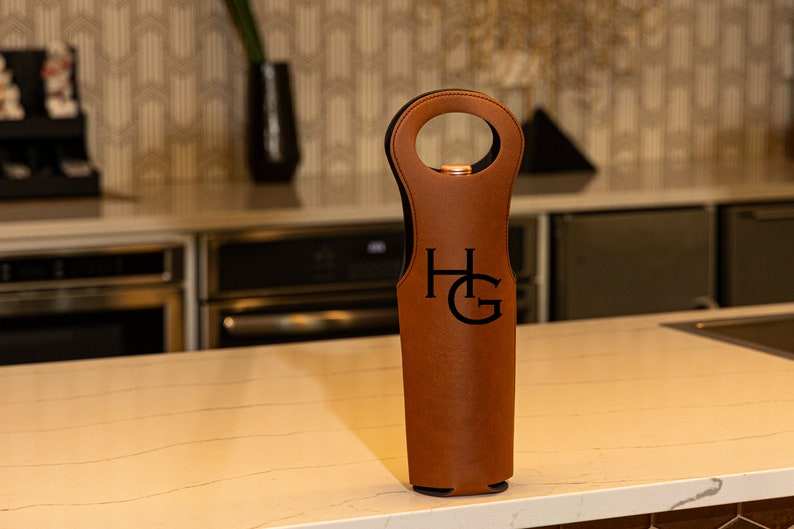 Personalized Wine Bag Engraved Custom Leatherette Leather Housewarming Anniversary Baby Shower LEB-0035