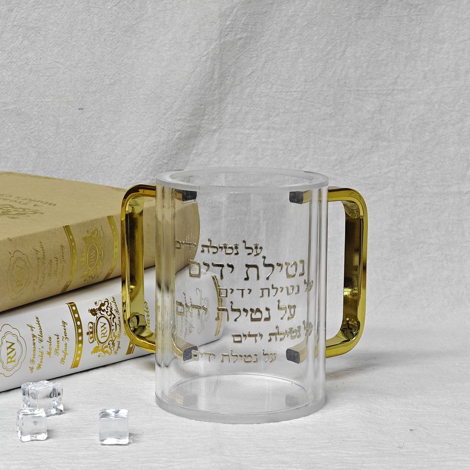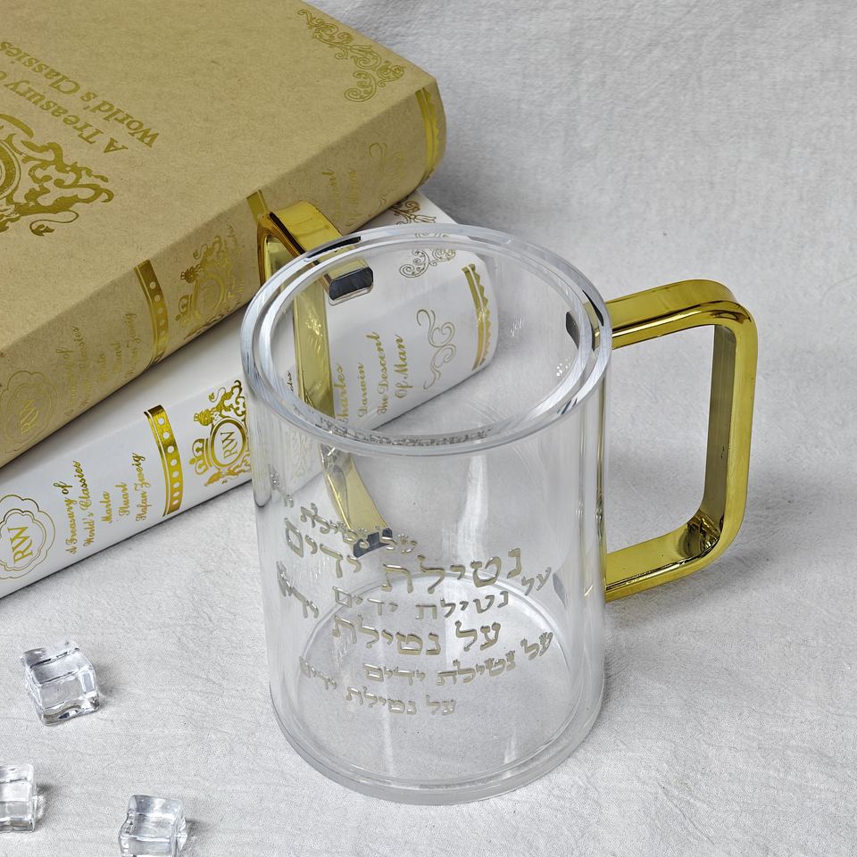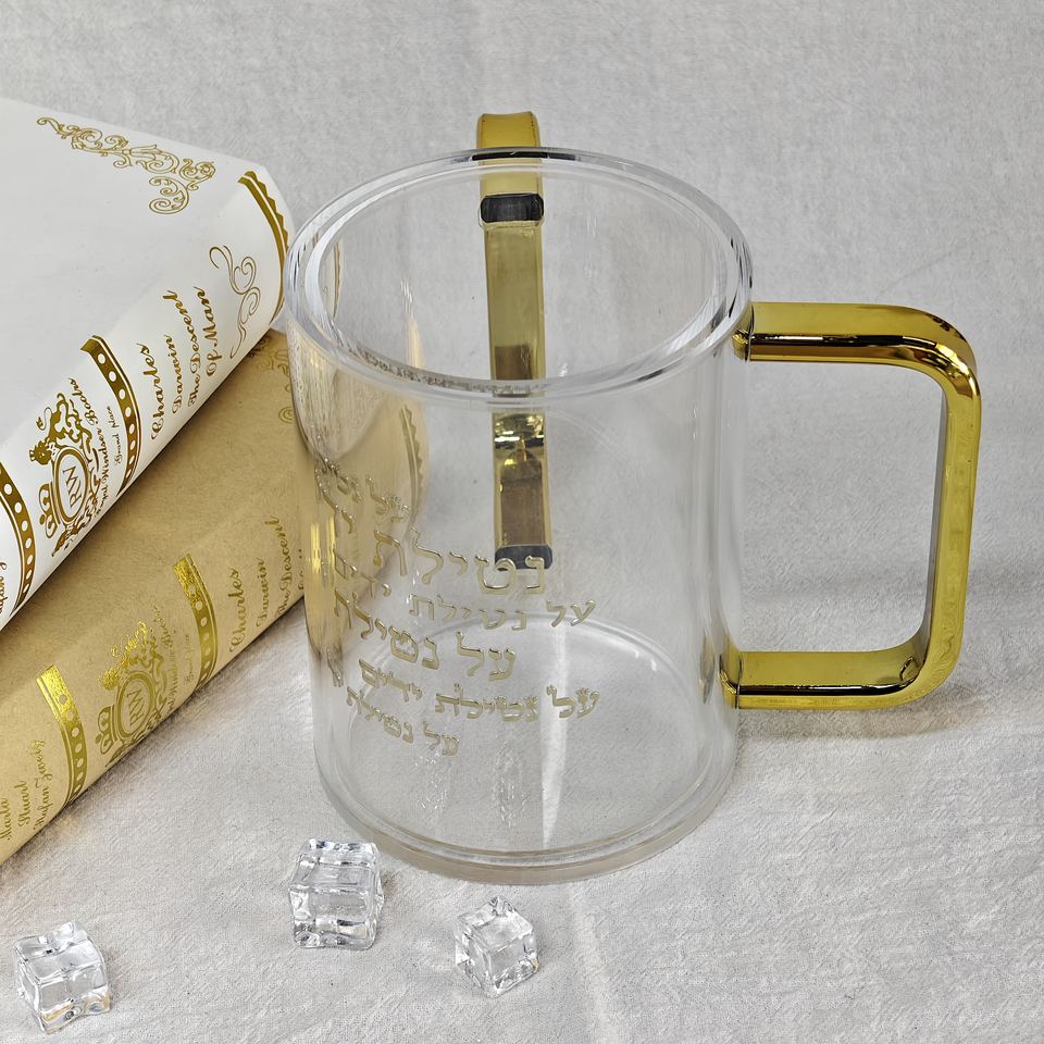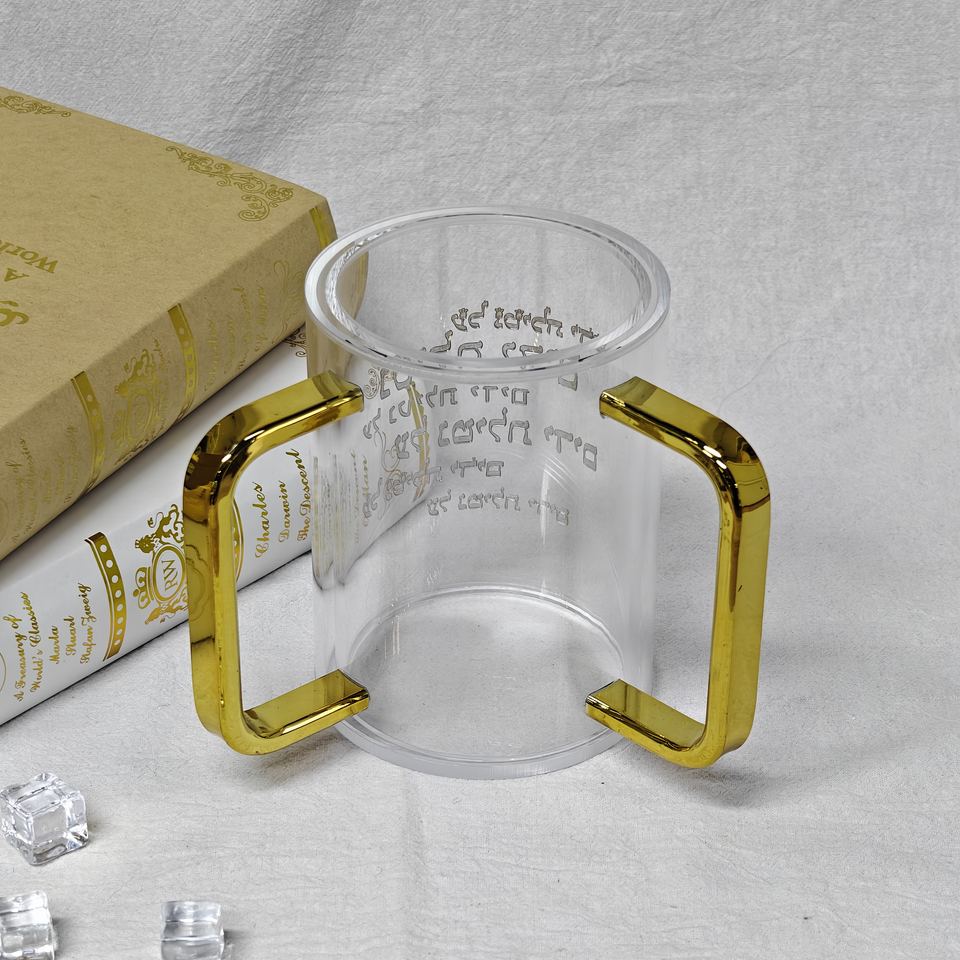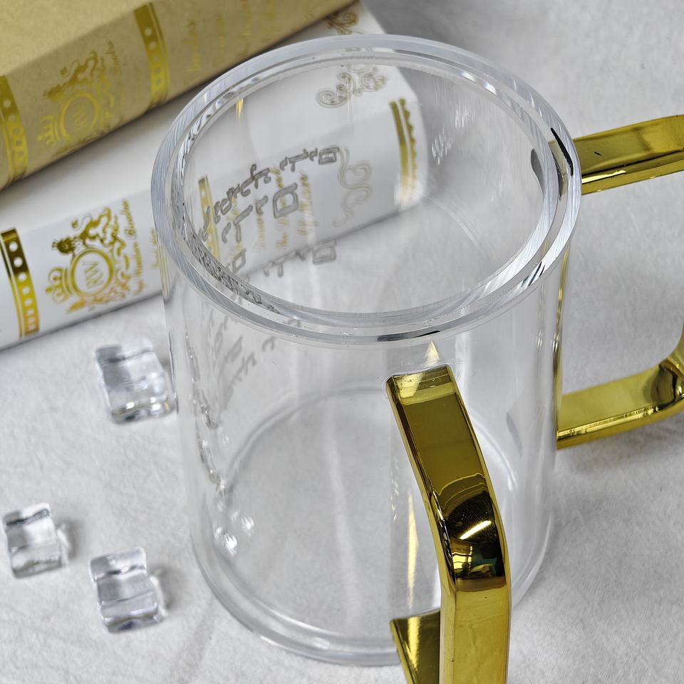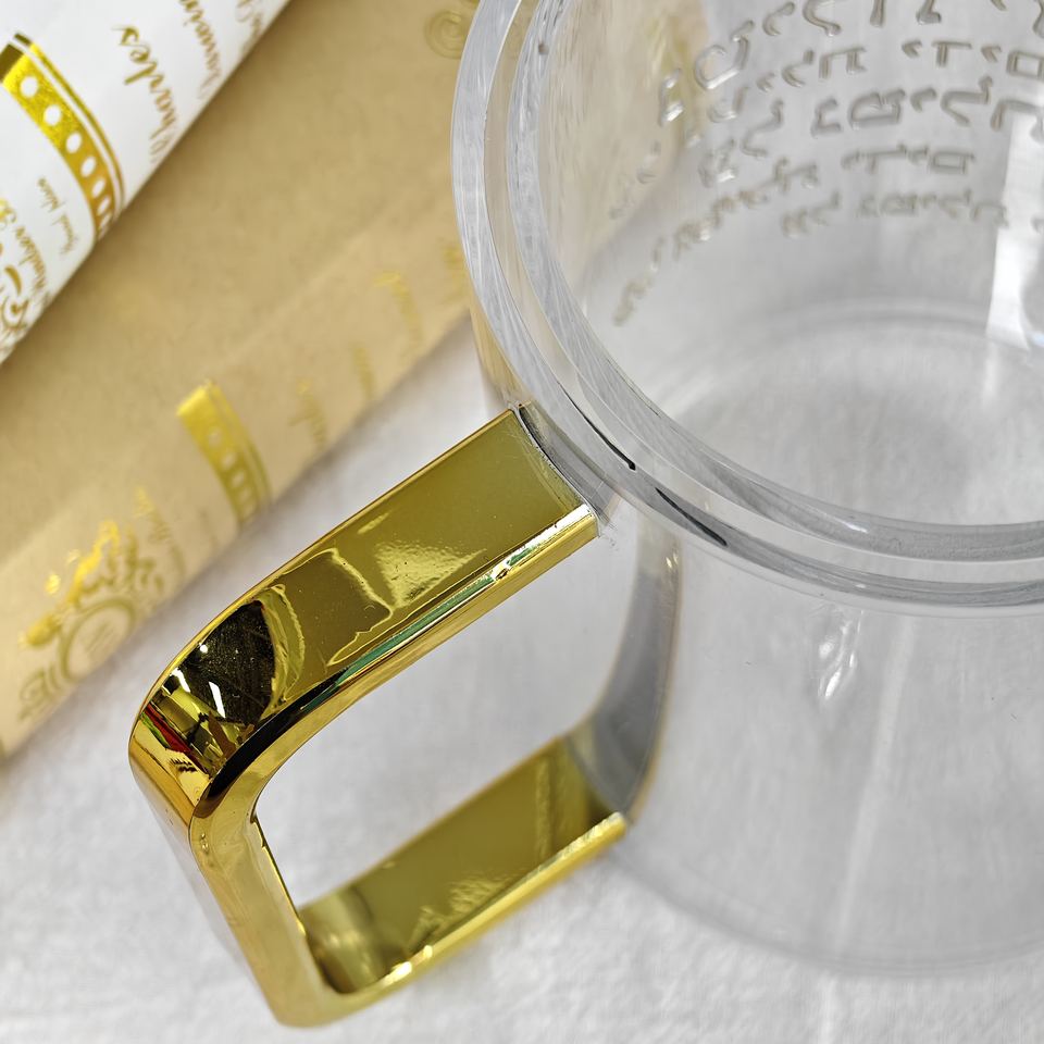 แก้วใสอะคริลิคแบบโคเชอร์สำหรับซักผ้า พร้อมหูจับสีทอง แบบสั่งทำพิเศษ