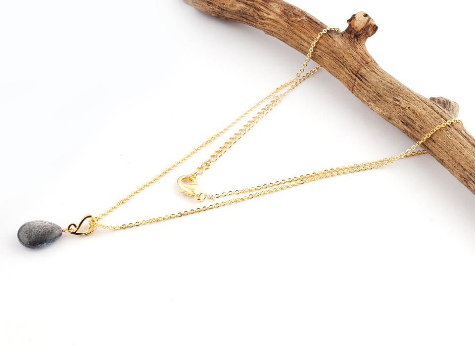 สร้อยคอจี้ลูกแพร์โอปอล Dendrite ธรรมชาติคุณภาพสูงสร้อยคอทองเหลือง18K ทำด้วยมือเครื่องประดับสายเคเบิลสร้อยคอผู้หญิง