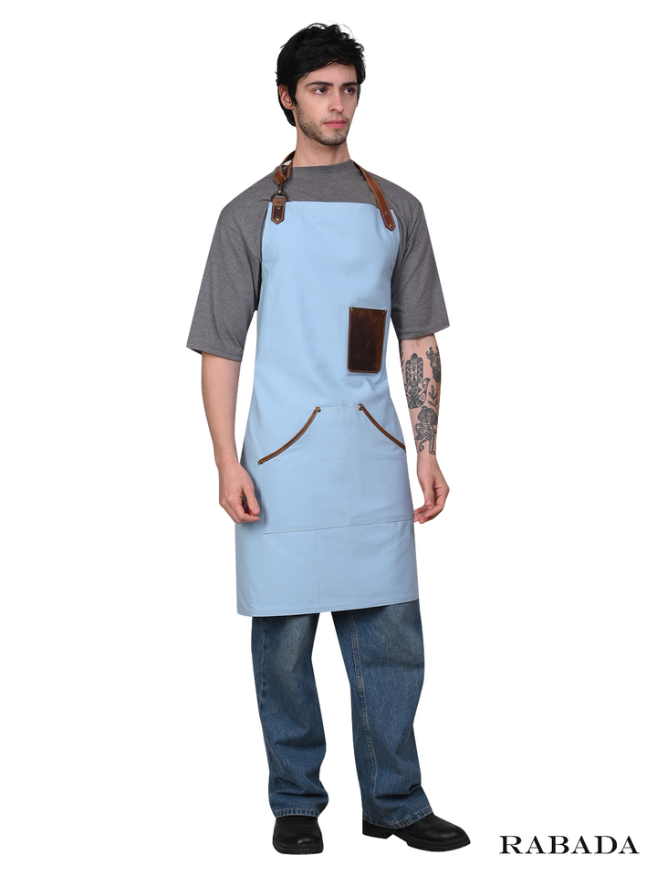 ผ้ากันเปื้อนผ้าแคนวาสสำหรับทุกเพศแบบมืออาชีพพร้อมสายรัดหนังอุปกรณ์ของบาร์เทนเดอร์กันน้ำสำหรับเชฟบาริสต้า