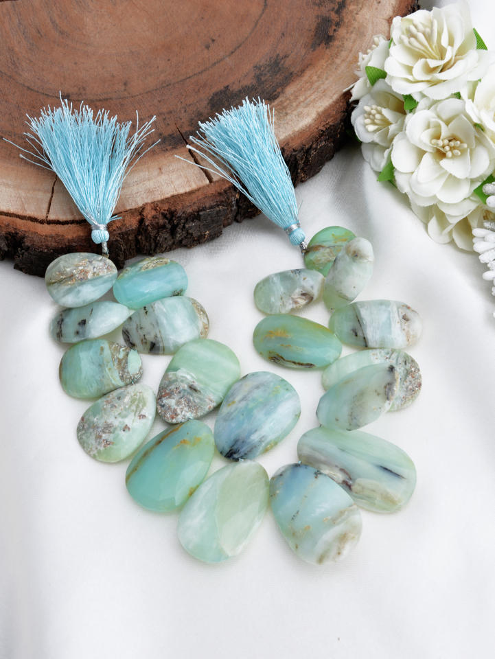 โอปอลเปรูทรงอัลมอนด์เจียระไน 1 เส้น อัญมณีธรรมชาติสำหรับทำเครื่องประดับชั้นดี