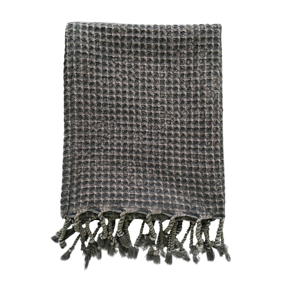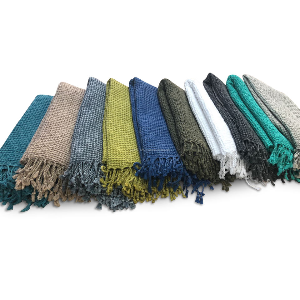 Pestemal ผ้าขนหนูแบบตุรกี,ผ้าเช็ดตัววาฟเฟิลผิวล้างแล้วแบบย้อนยุคสีหินขัดจากหิน