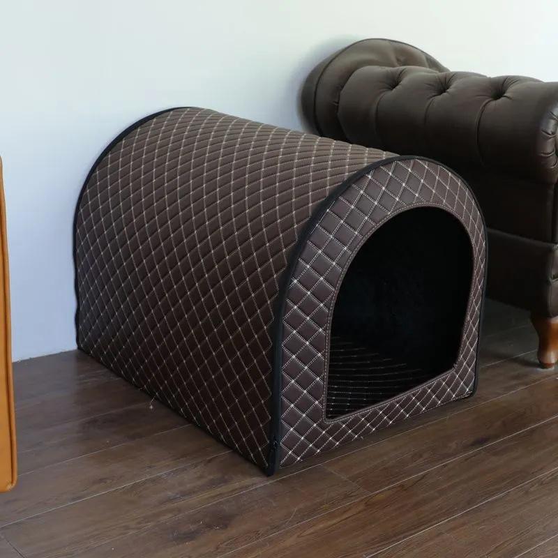 เตียงสัตว์เลี้ยง บ้านสุนัข สีน้ำตาลกาแฟและสีดำ รูปทรงสี่เหลี่ยมผืนผ้า ใยโพลีเอสเตอร์ ซักมือได้ ใช้ได้ทั้งภายในและภายนอกอาคาร
