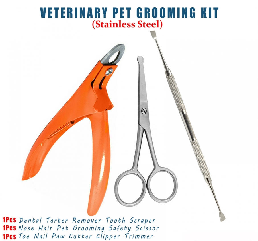 ชุดดูแลสัตว์เลี้ยงพร้อมกรรไกรตัดเล็บและที่ขูดฟันเครื่องมือสัตวแพทย์หลากหลายชนิด
