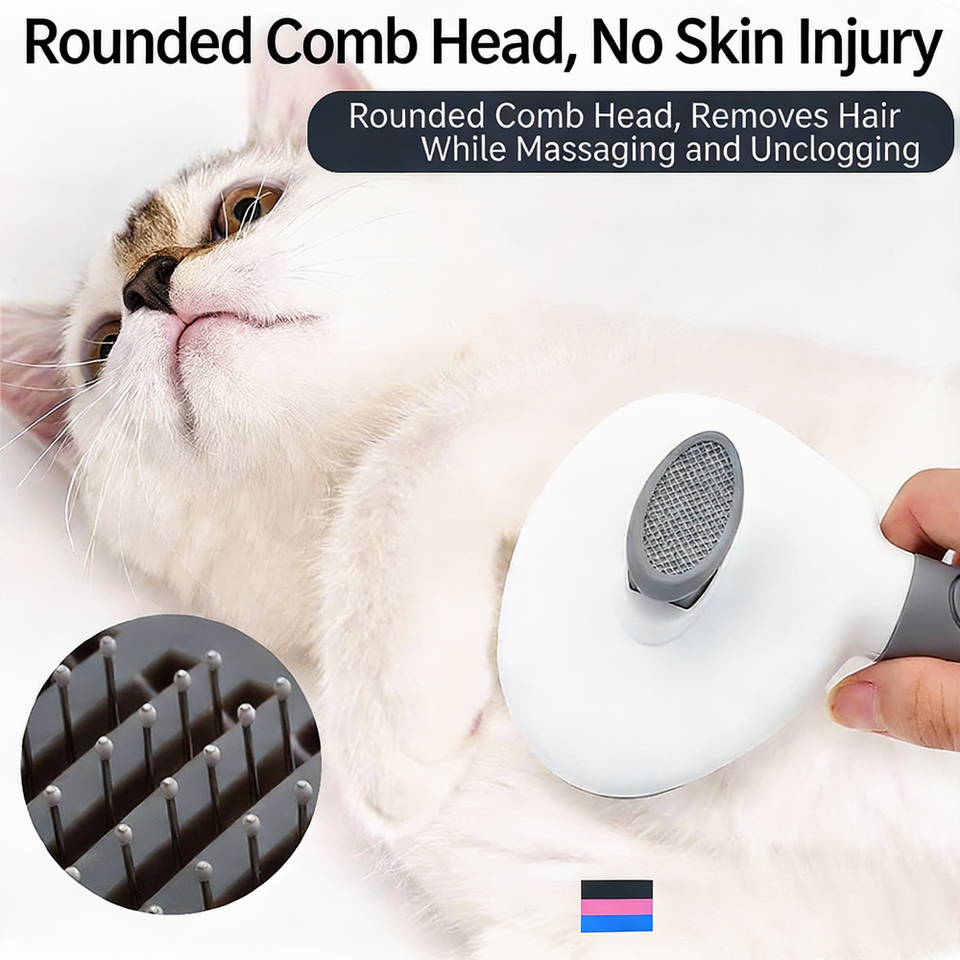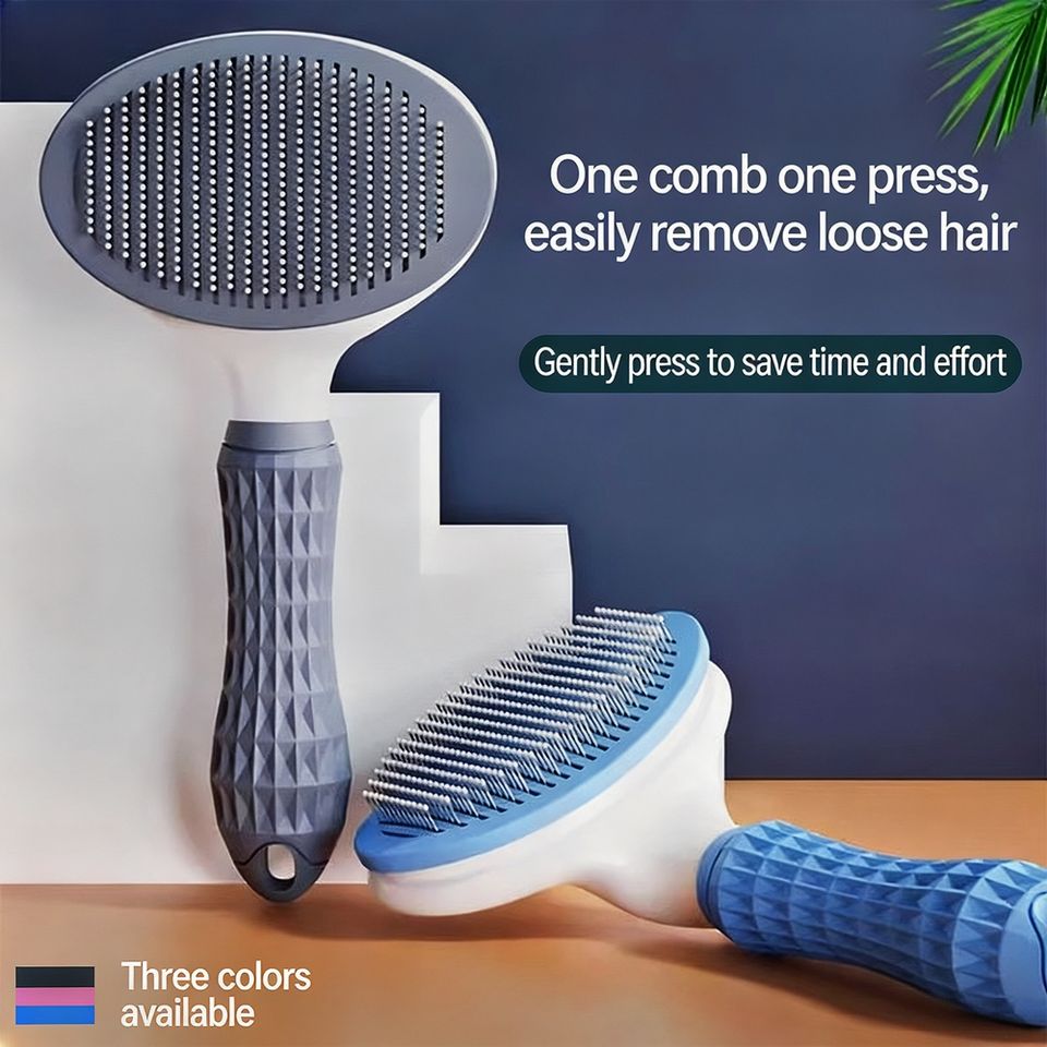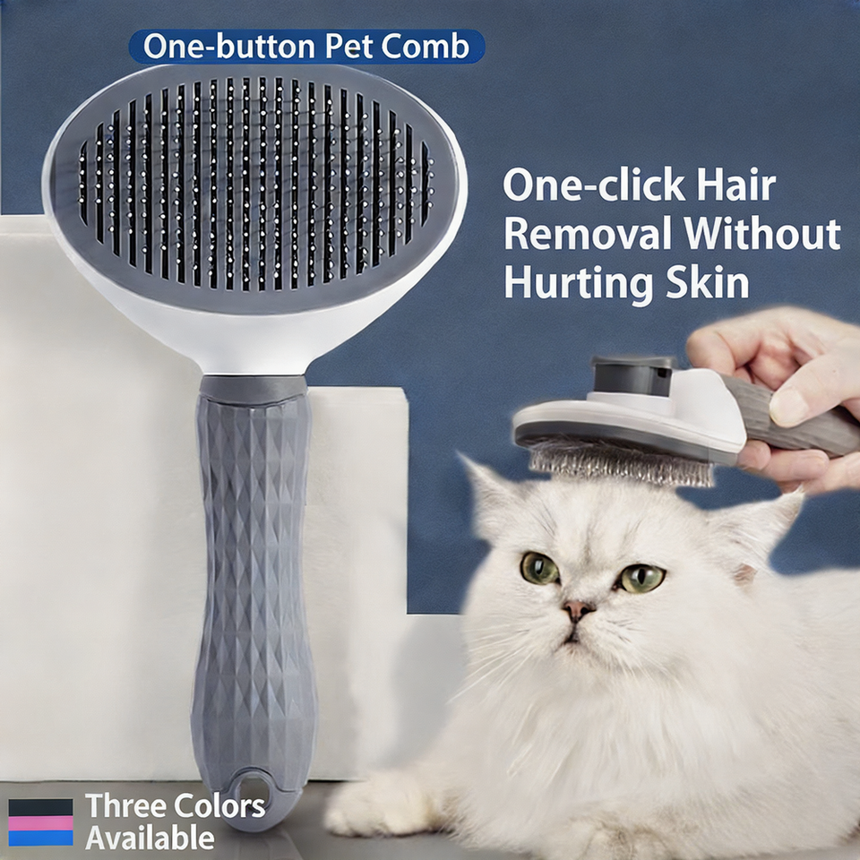 หวีแปรงสำหรับสัตว์เลี้ยง แมวและสุนัข - กำจัดขนลอยและเห็บหมัด ทำความสะอาดตัวเองได้ด้วยปุ่มเดียว อุปกรณ์ทำความสะอาดสัตว์เลี้ยง