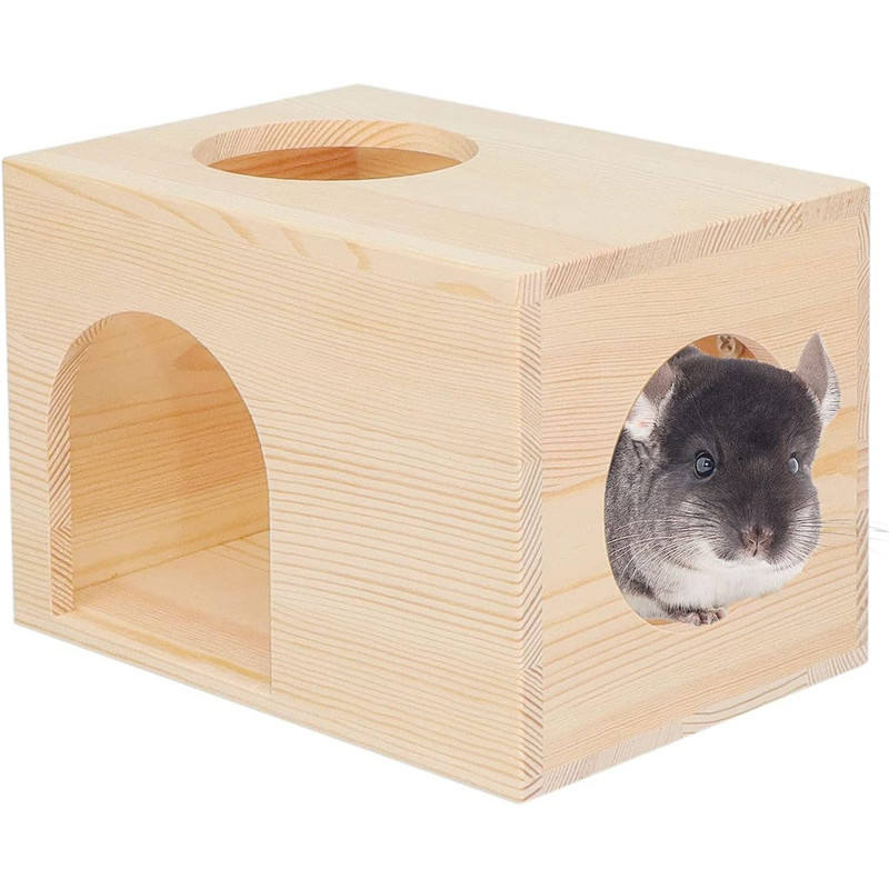 กระท่อมชินชิลล่าสำหรับสัตว์เลี้ยงขนาดเล็กทำจากไม้ธรรมชาติที่ซ่อนของสัตว์สำหรับเครื่องร่อนน้ำตาลกระรอกชินชิล่า