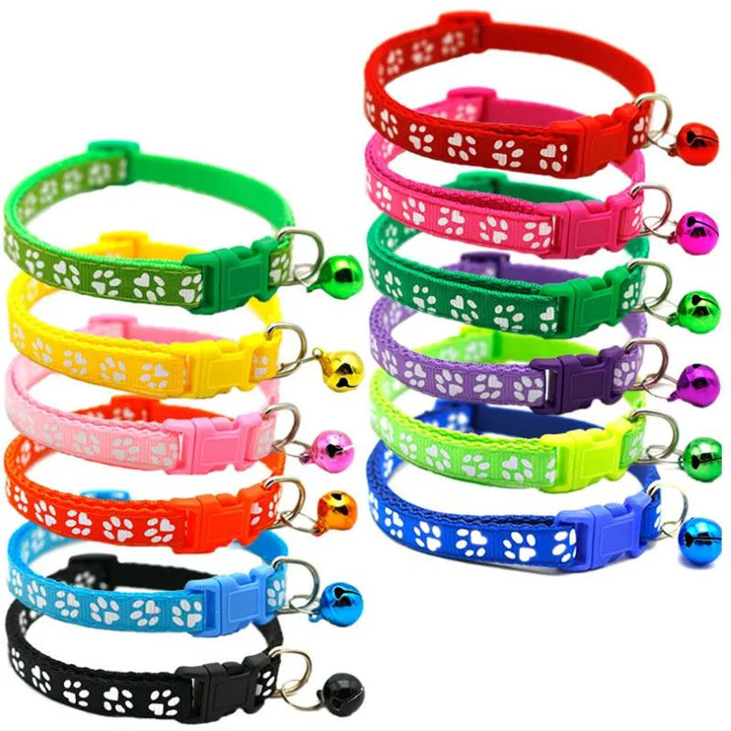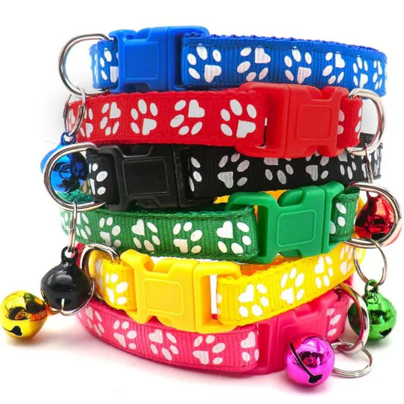 ปลอกคอสัตว์เลี้ยงพร้อมกระดิ่งลายเท้าการ์ตูนหลากสีสัน อุปกรณ์เสริมสำหรับสุนัข ลูกสุนัข แมว ปลอกคอแมวแบบปรับได้ พร้อมกระดิ่งนิรภัย สร้อยคอสำหรับสัตว์เลี้ยง
