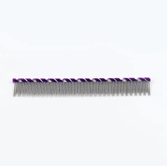 หวีขนสัตว์เลี้ยงที่มีฟันสแตนเลสยาวและสั้นสำหรับเครื่องมือกำจัดปมขนสัตว์เลี้ยงหวีเกรย์ฮาวด์