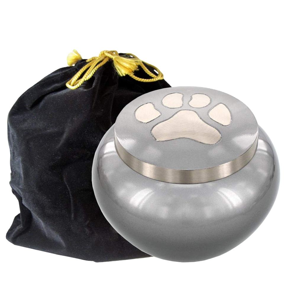 โกศบรรจุอัฐิสัตว์เลี้ยง ลายอุ้งเท้า โกศโลหะสำหรับเก็บอัฐิ โกศที่ระลึกสำหรับสุนัขและแมว โกศตกแต่งทันสมัย