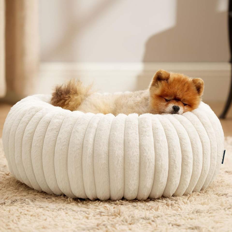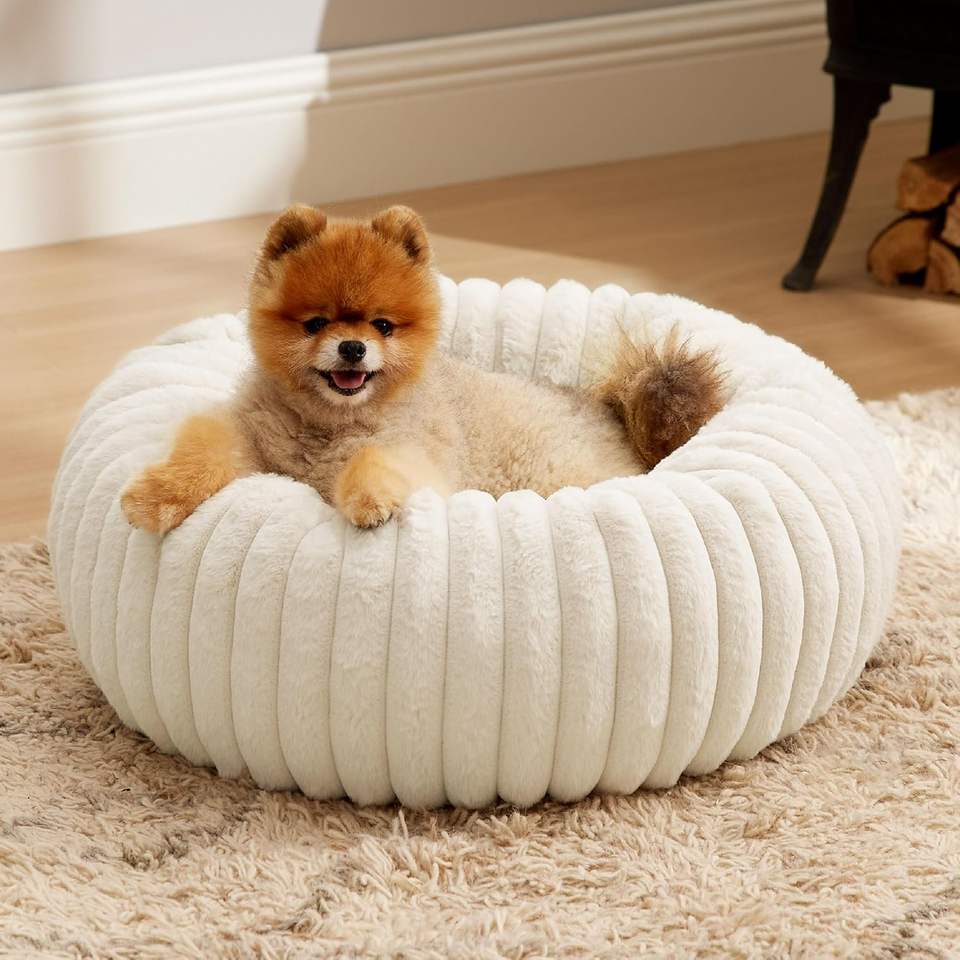 ที่นอนสัตว์เลี้ยงสำหรับทุกฤดู รูปทรงโดนัท ผ้าพลัฌอุ่นๆ ที่นอนแมวแสนสบาย สำหรับสุนัขขนาดเล็กและใหญ่ ดีไซน์ที่นอนสุนัข ผลิตภัณฑ์สำหรับสุนัข