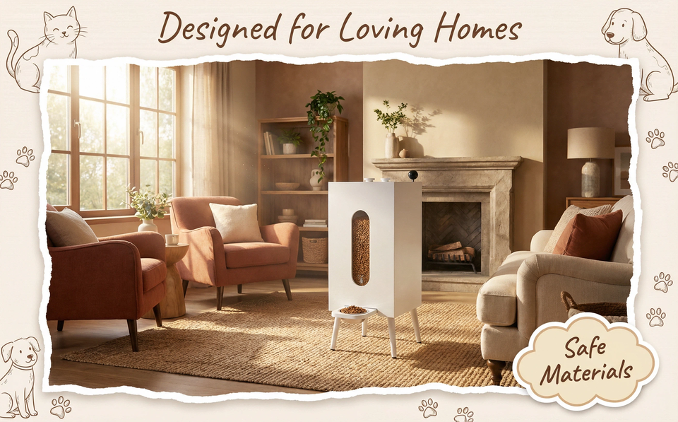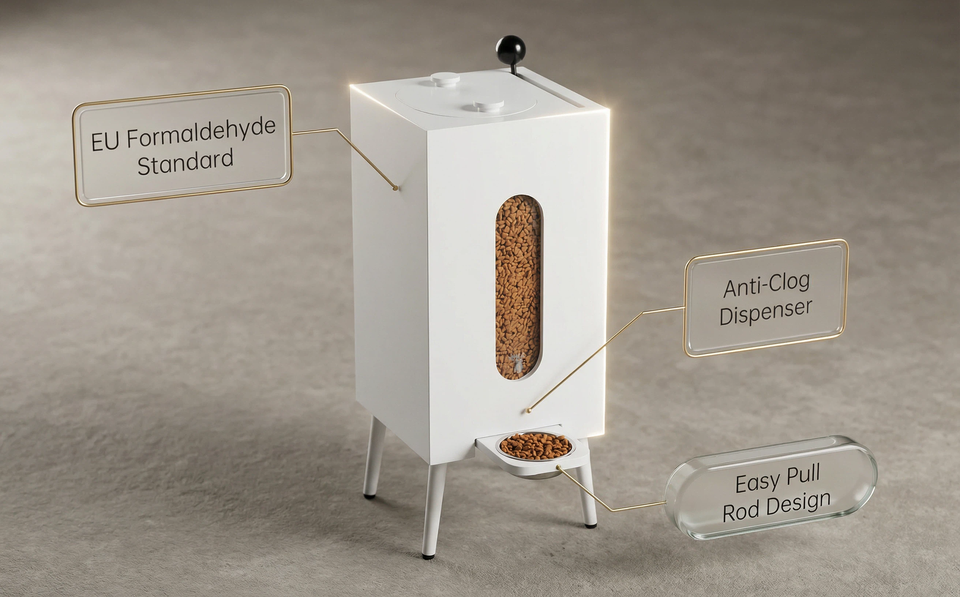 เครื่องให้อาหารสัตว์เลี้ยง ความจุขนาดใหญ่ ภาชนะเก็บอาหารเป็นมิตรกับสิ่งแวดล้อม สำหรับแมว สุนัข นก ทำจากไม้คุณภาพสูง ใช้งานง่ายด้วยคันโยก นำเข้าจากยุโรป