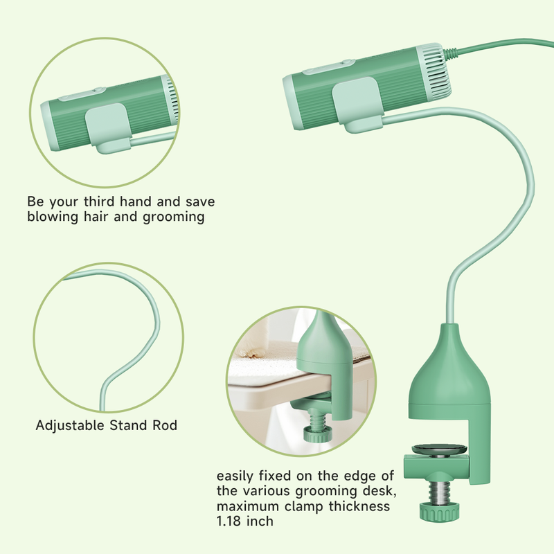 เครื่องเป่าขนสัตว์เลี้ยงแบบแขวนคอ ปลดปล่อยมือของคุณ พร้อมขาตั้งตั้งโต๊ะ