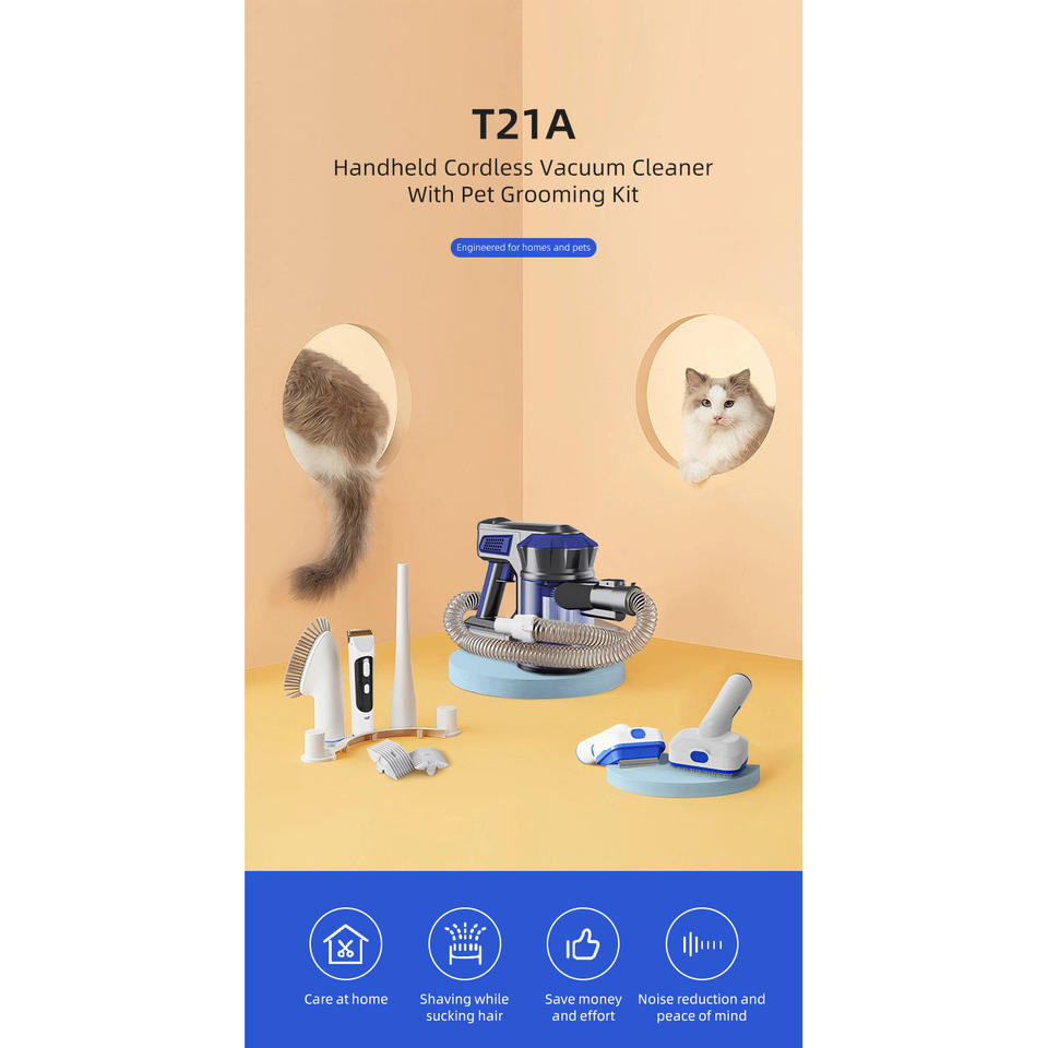 เครื่องดูดฝุ่นไฟฟ้าสำหรับกรูมมิ่งสัตว์เลี้ยงพร้อมปัตตาเลี่ยนสำหรับแมวและสุนัข เครื่องตัดขนอเนกประสงค์แบบใช้แบตเตอรี่