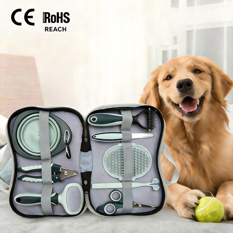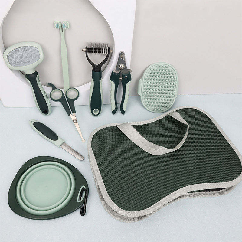 ชุดอุปกรณ์กรูมมิ่งสัตว์เลี้ยงพร้อมหวี แปรง ที่ตัดเล็บ ชามพับได้ แปรงสีฟันสำหรับสุนัขและแมว