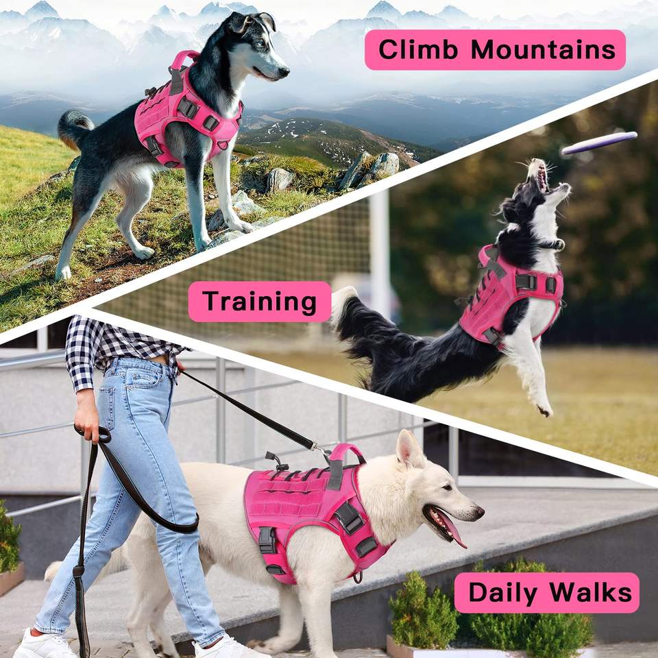 เสื้อกั๊กควบคุมสุนัขแบบยุทธวิธีสายรัดจูงสัตว์เลี้ยงแบบไม่ดึงปรับได้สายรัดสุนัขแบบทหารสะท้อนแสง