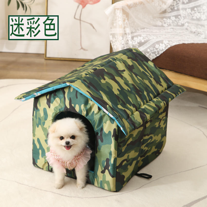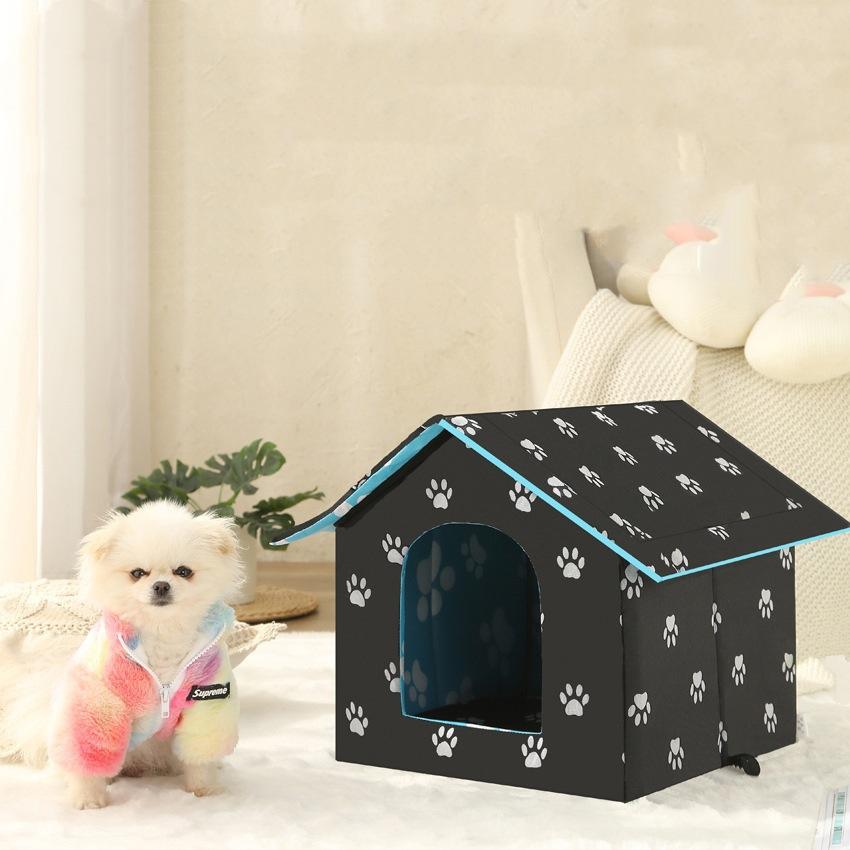 บ้านสัตว์เลี้ยงสำหรับแมวและสุนัข กันน้ำ พับได้ ดีไซน์ลายอุ้งเท้า ใช้ได้ทั้งในร่มและกลางแจ้ง ขนาดเล็ก สีดำ
