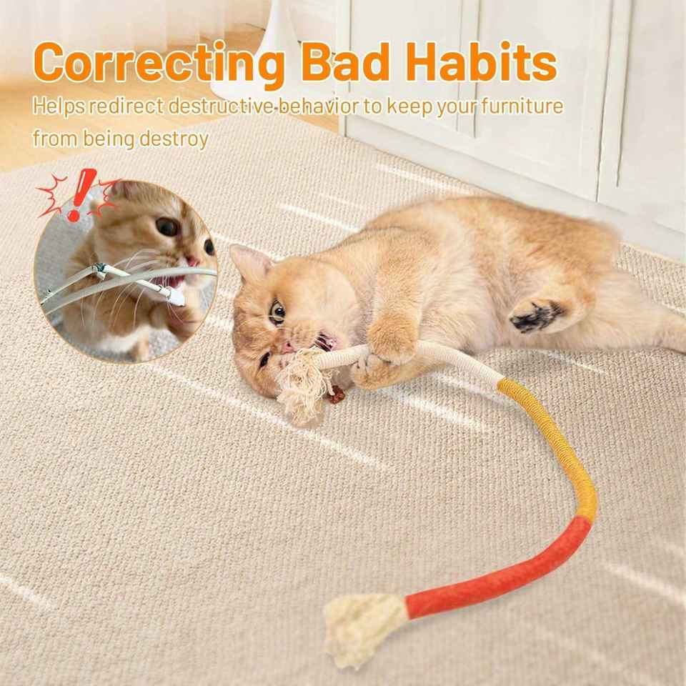 ของเล่นสัตว์เลี้ยงแบบเคลื่อนไหวได้ เชือกกัดสำหรับแมว ไม้แทะเล่นเพื่อความบันเทิงในตัว ช่วยคลายความเบื่อหน่าย กระตุ้นแมวเล่น เชือกฝ้าย