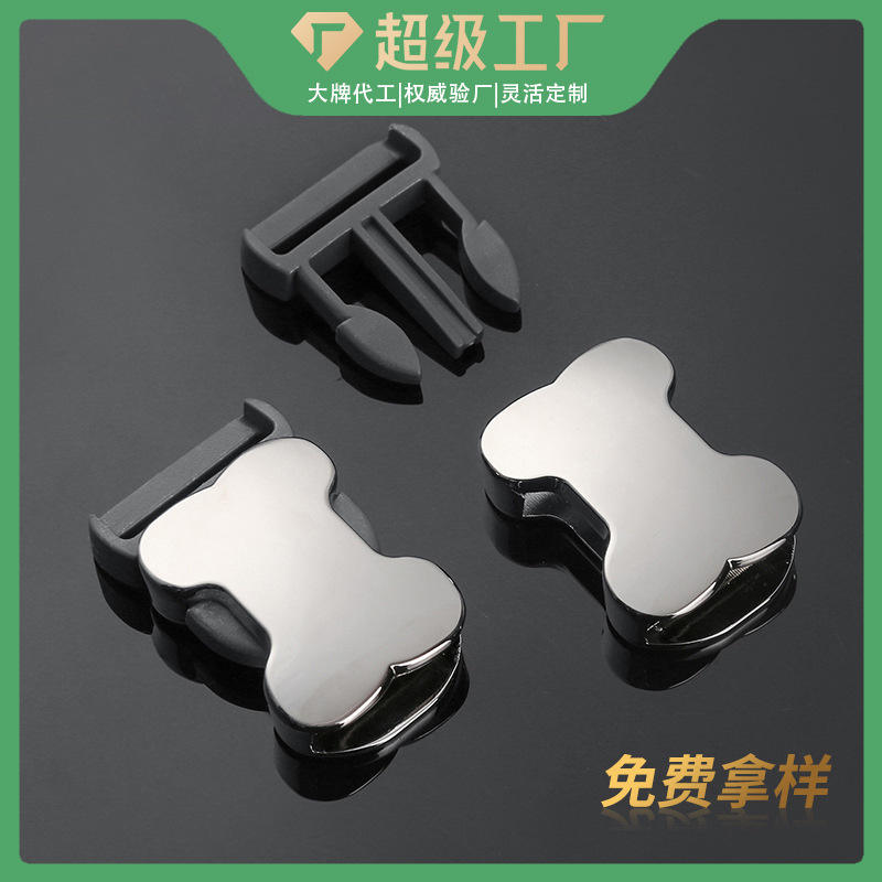 หัวเข็มขัดโลหะรูปกระดูกแบบปลดเร็ว สีเงิน สำหรับปลอกคอ รถเข็นเด็ก กระเป๋าเป้สะพายหลัง สายรัด DZB208-25
