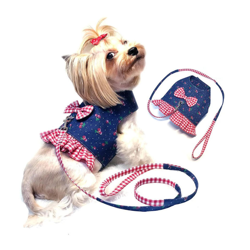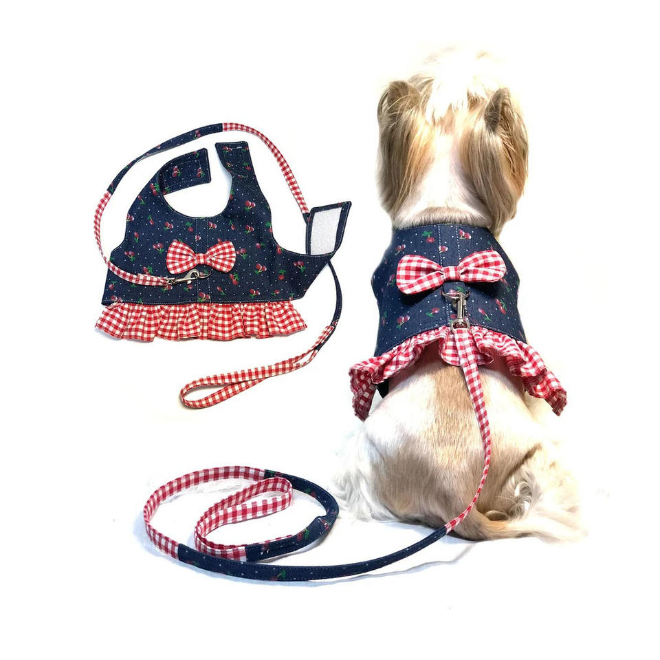 เสื้อกั๊กสำหรับสุนัขพันธุ์เล็กวัสดุสำหรับสัตว์เลี้ยงกระโปรงจีบสายจูงสุนัขแมวออกแบบได้ตามต้องการ