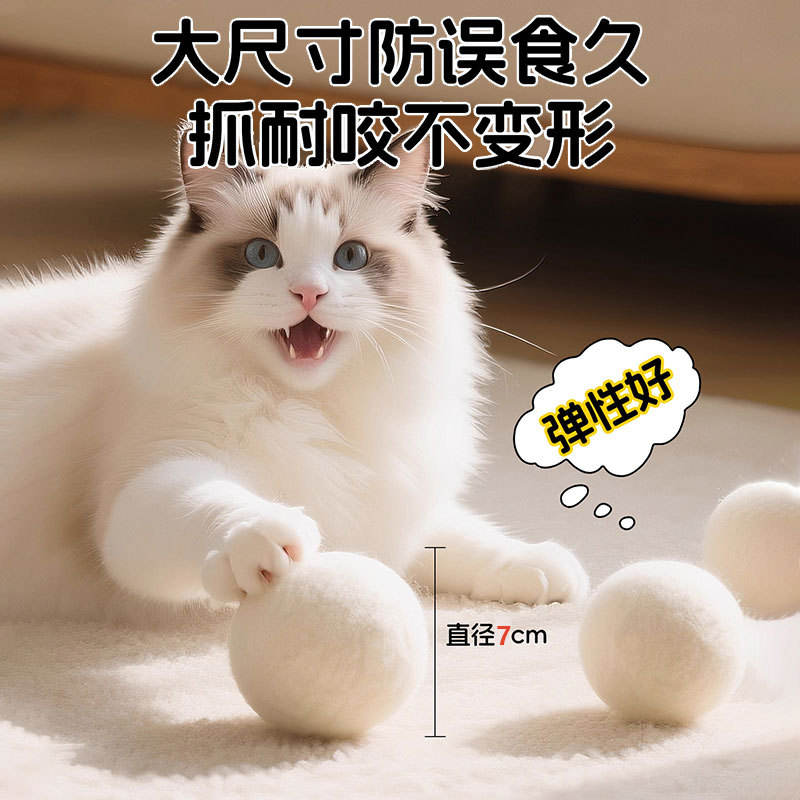 ของเล่นแมวทำจากขนสัตว์ธรรมชาติ ทนทาน ช่วยผ่อนคลาย ลดความเบื่อหน่าย เงียบสงบ ลูกบอลขนสัตว์สำหรับกัดเล่น