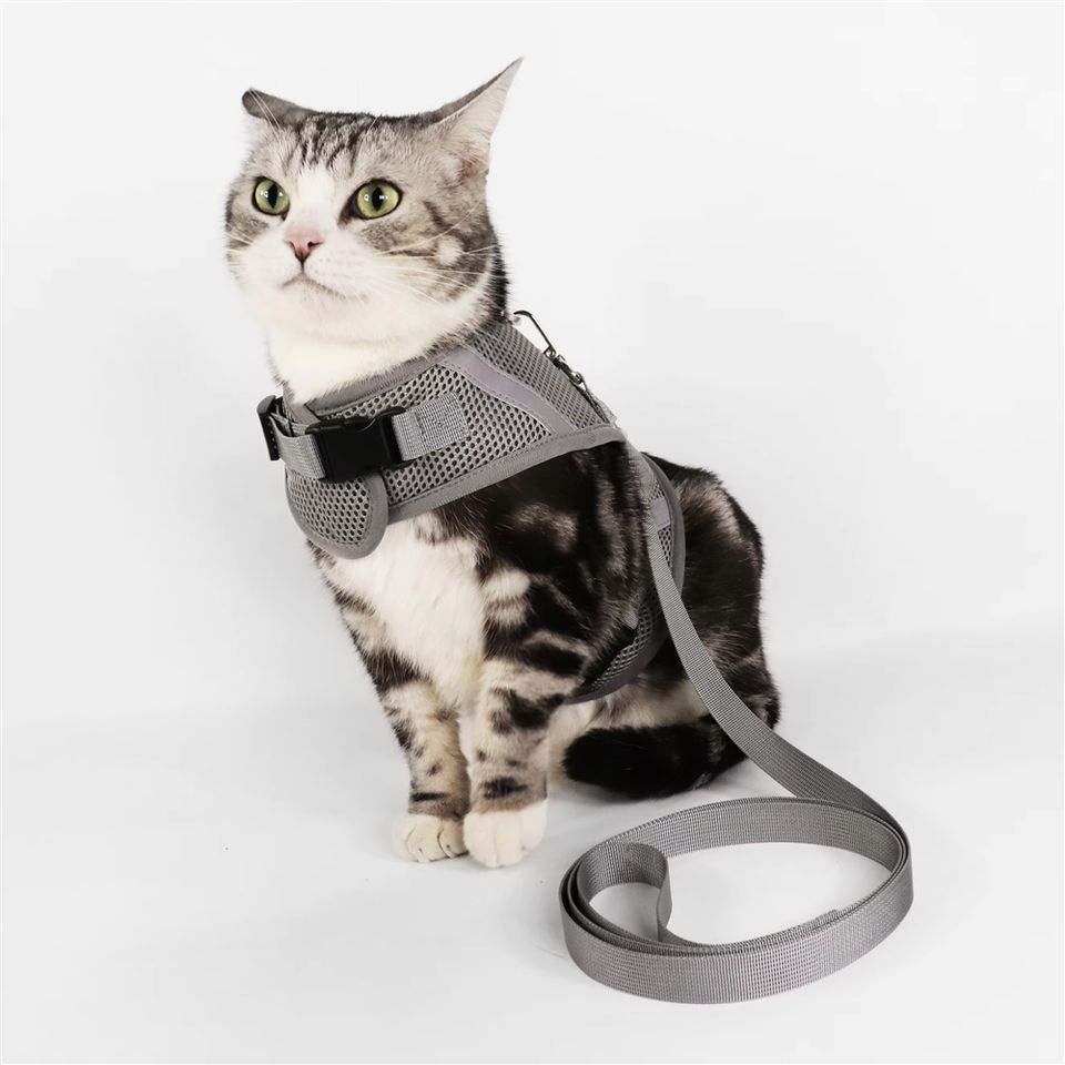 ชุดสายรัดอกสัตว์เลี้ยงแบบปรับได้ พร้อมสายจูง ป้องกันการหลุดรอด สำหรับพาเดินเล่น