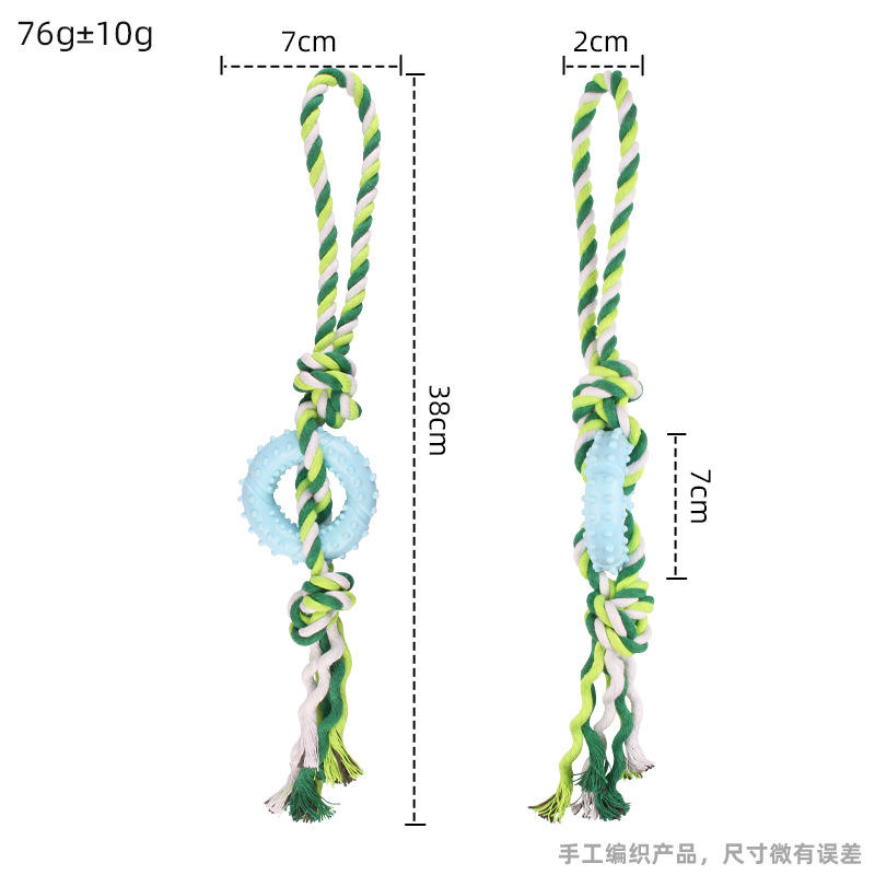 เชือกคอตตอนของเล่นสำหรับสัตว์เลี้ยงเชือกดึงห่วงแบบจุดลายจุดเชือกบดทนทานต่อการกัดฝึกปมชุดของเล่นเพื่อความสนุกสนานสำหรับสุนัข